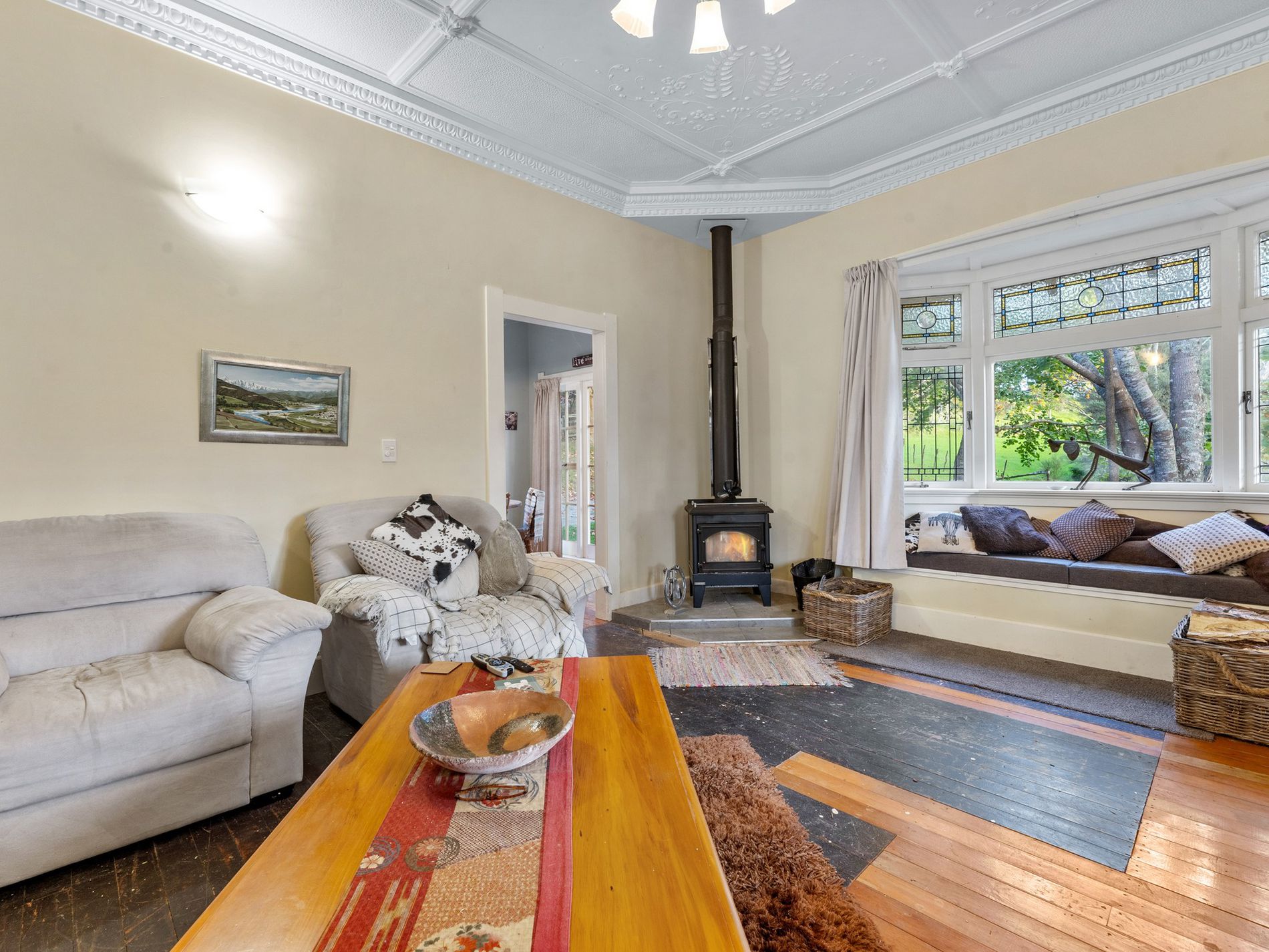 Abundant fruit trees such as apples, figs, plums, peach (golden queen), nectarine, feijoa, avocado, mandarin, orange, lemon, black currant, tamarillo (red and yellow), pear and olive trees.