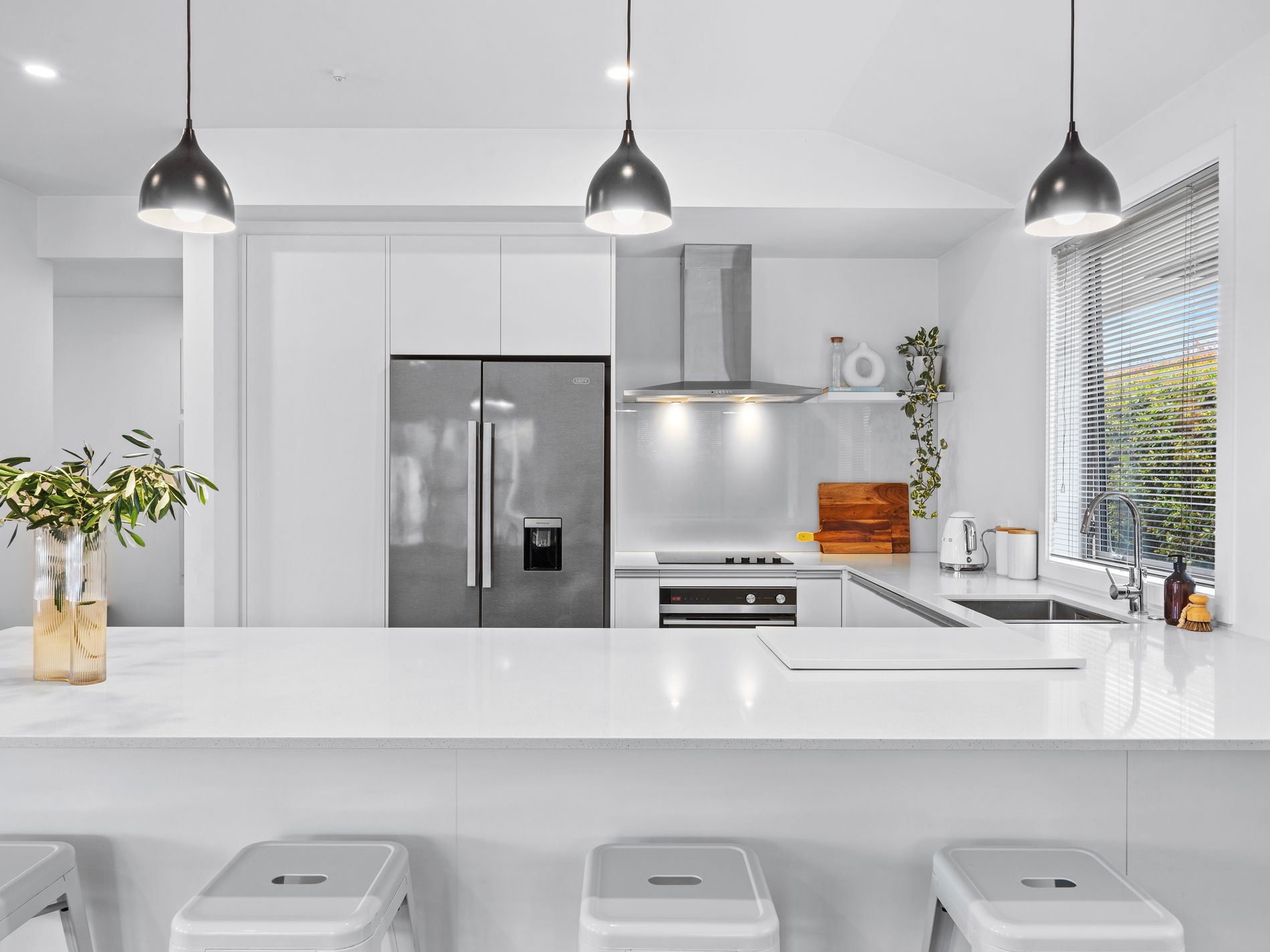 The interior has been designed with high quality fittings, including stone kitchen benchtops, tiled bathrooms, fitted wardrobes and double-glazed joinery throughout. This lovely home offers three generous bedrooms with the master suite enjoying its own walk-in wardrobe and ensuite. The open plan lounge features an extra-high stud height, enhancing the overall sense of spaciousness, and flows out to the sunny alfresco area finished with kwila decking, perfect for summer B.B.Q's.