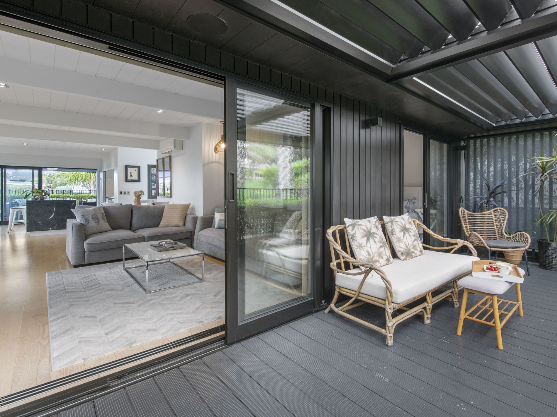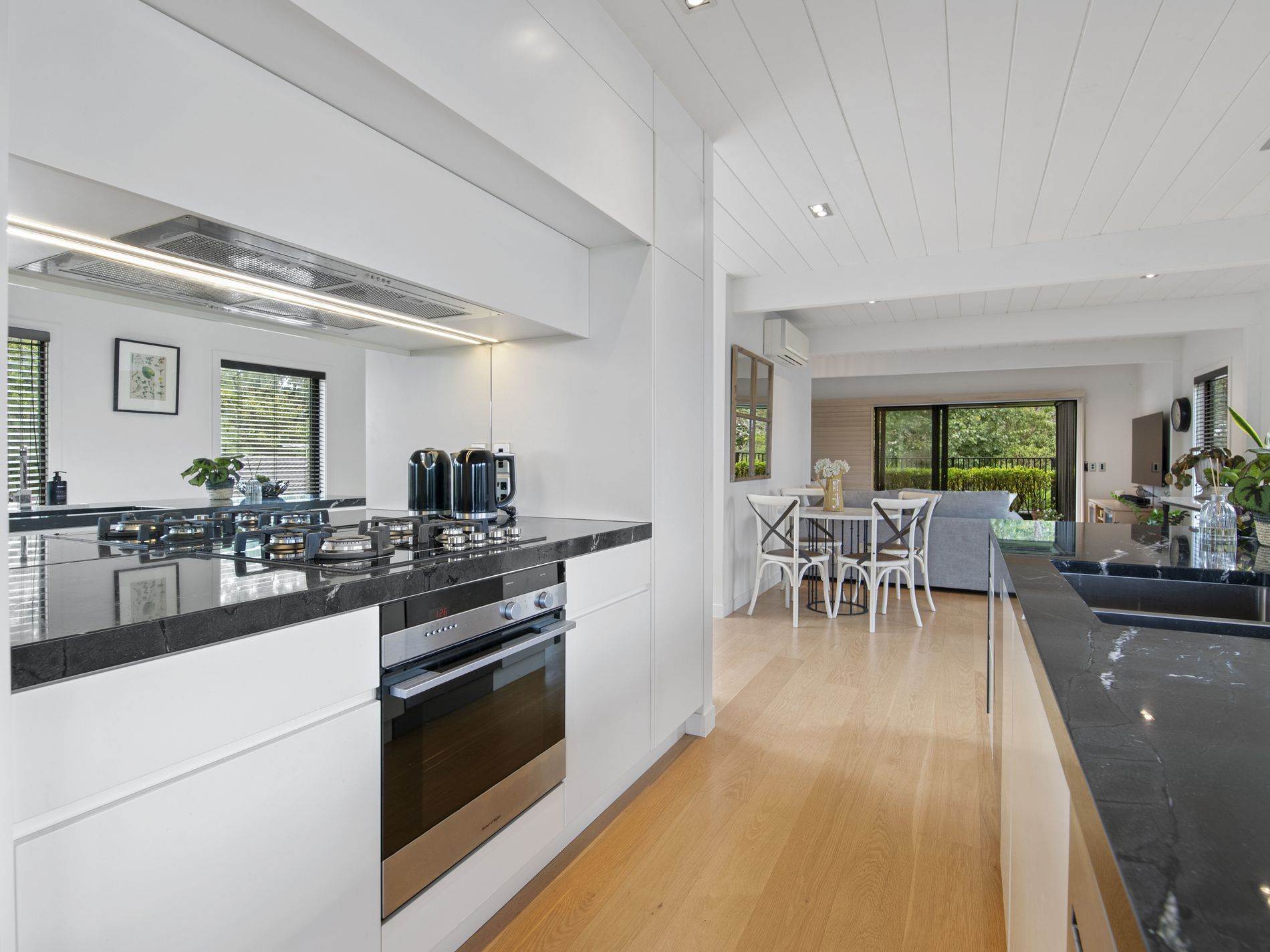 Trendy, Sleek And Fully Renovated. A much admired home, weatherboard, double glazed windows, it's own driveway and on a freehold section trimmed with beautiful leafy landscaping. A very sunny aspect capturing a superb outlook to the marina and sea.