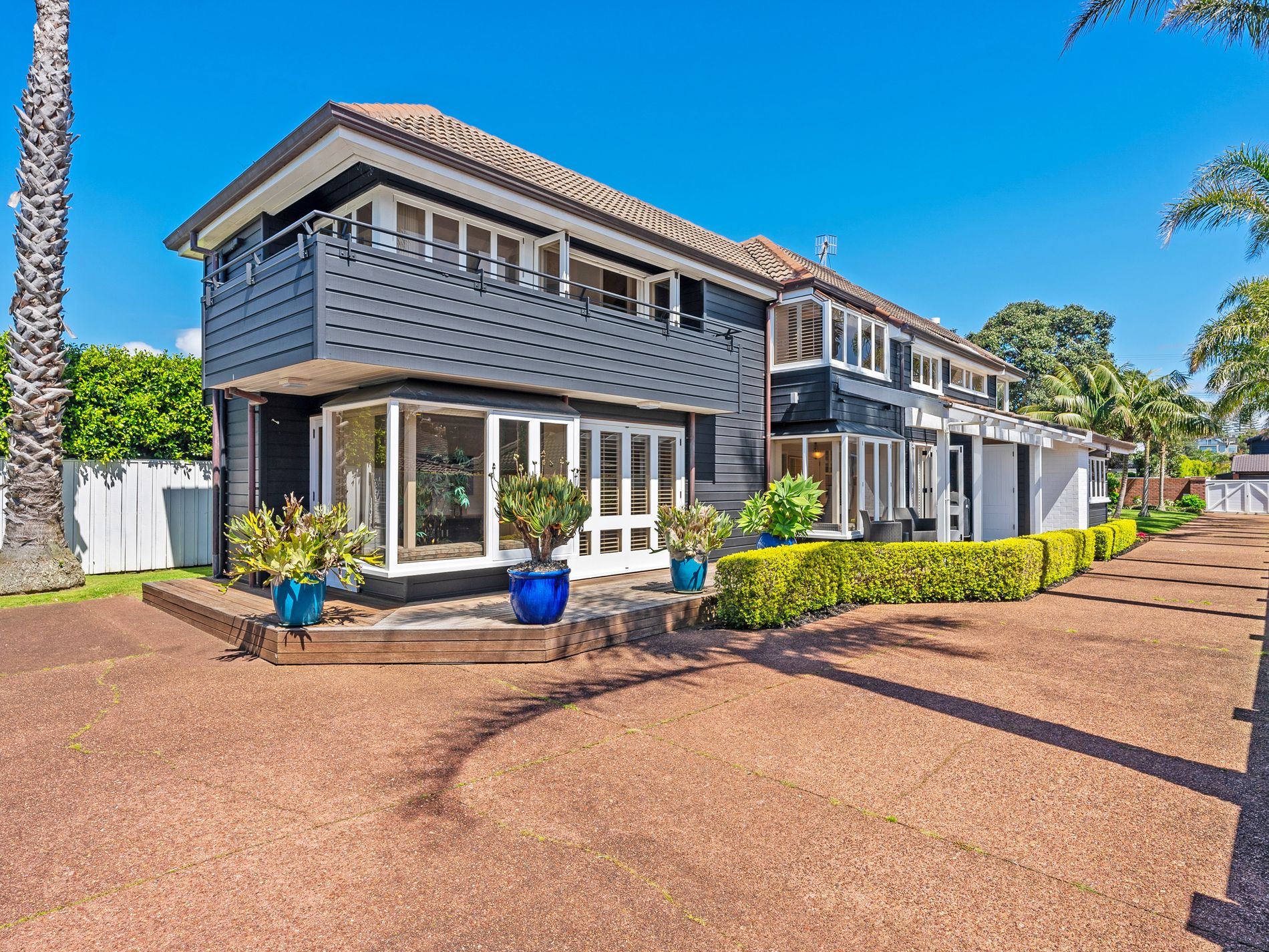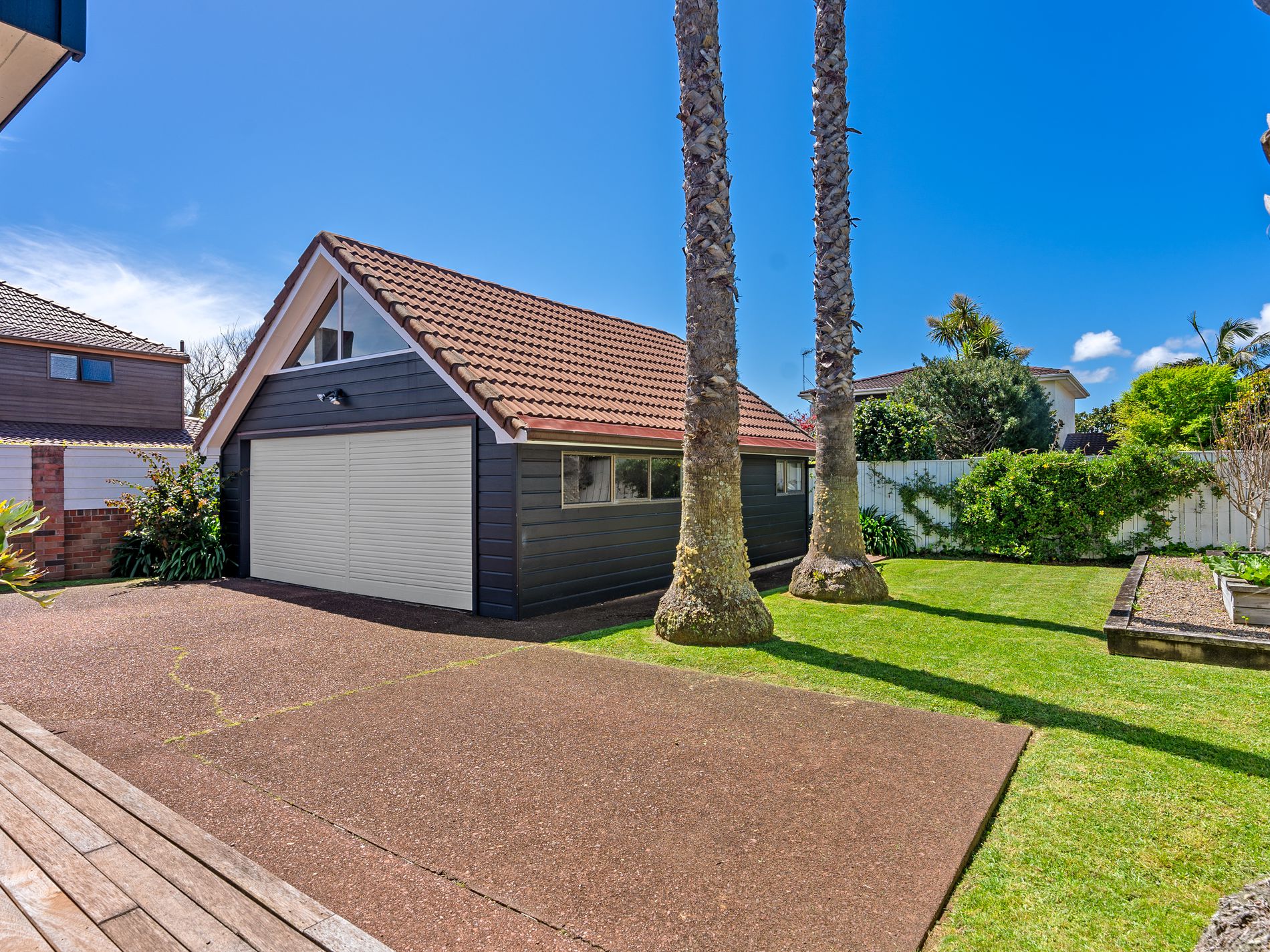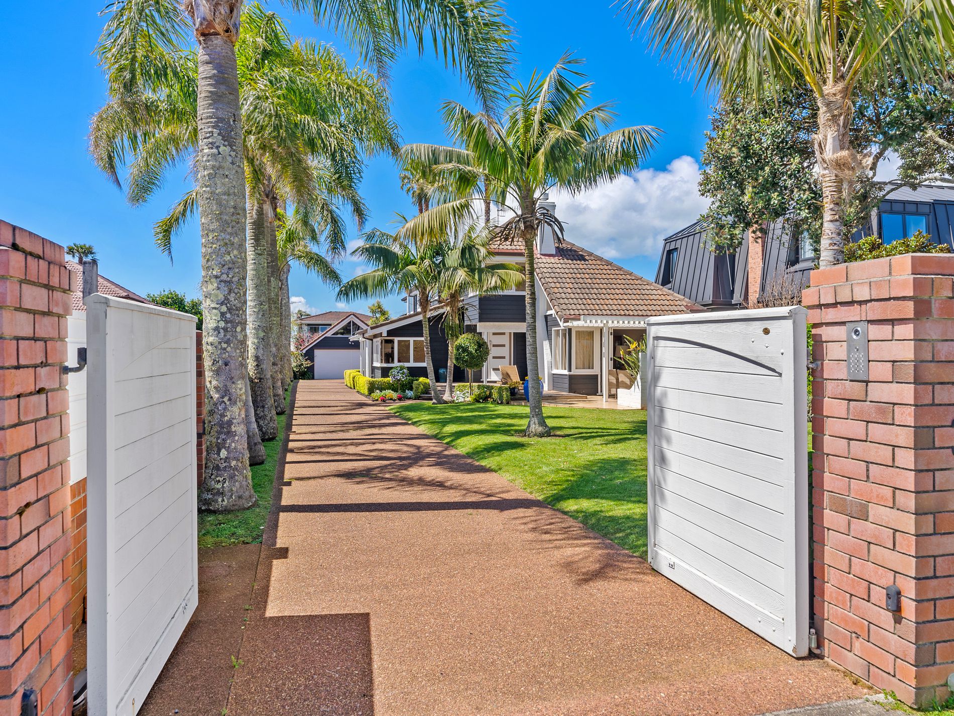 Only 2-3 minutes walk onto the sands of beautiful Milford Beach and the Milford Shopping Centre, being an 854m2 (more or less) FREEHOLD TITLE zoned Residential Mixed Housing Urban, in a tropical setting of established Palms and manicured lawns you will find this spacious European inspired brick and cedar home to call home. At entry level, there is a separate formal lounge area with a high vaulted cathedral ceiling, a large open plan kitchen/dining/family room, with gourmet kitchen complete with a top-of-the-line big bakers oven, and cooktop, plus a laundry room, toilet and shower.