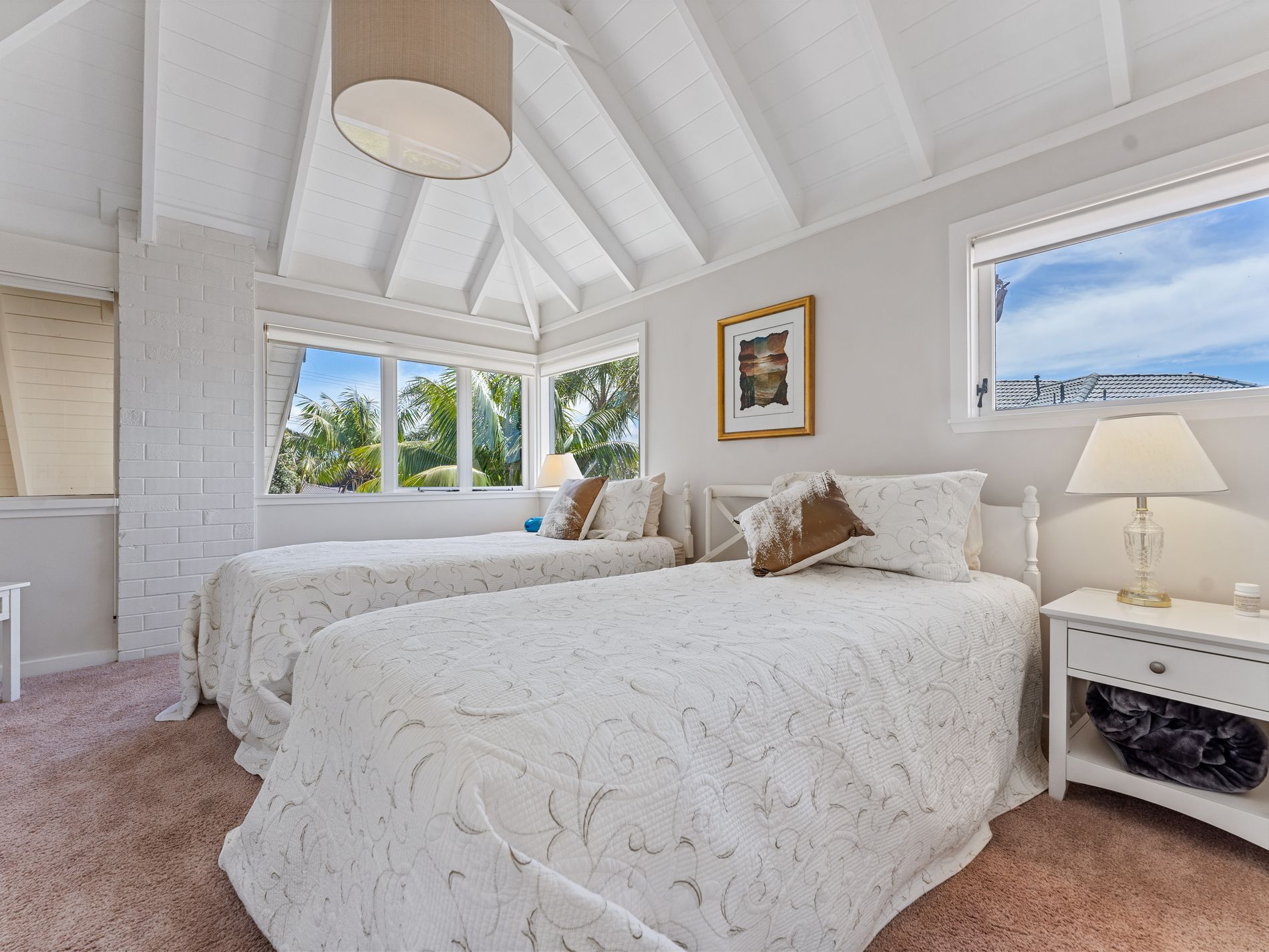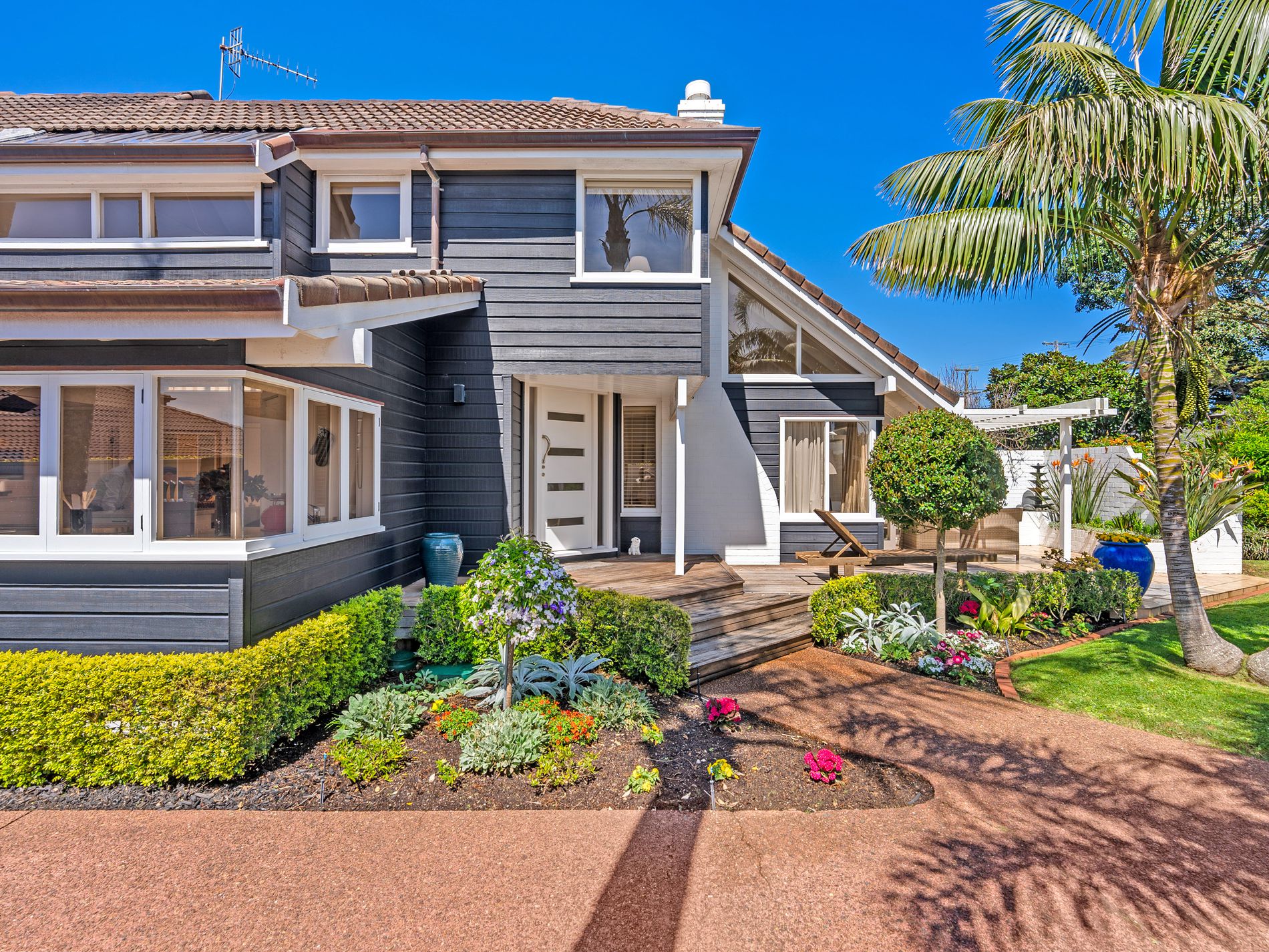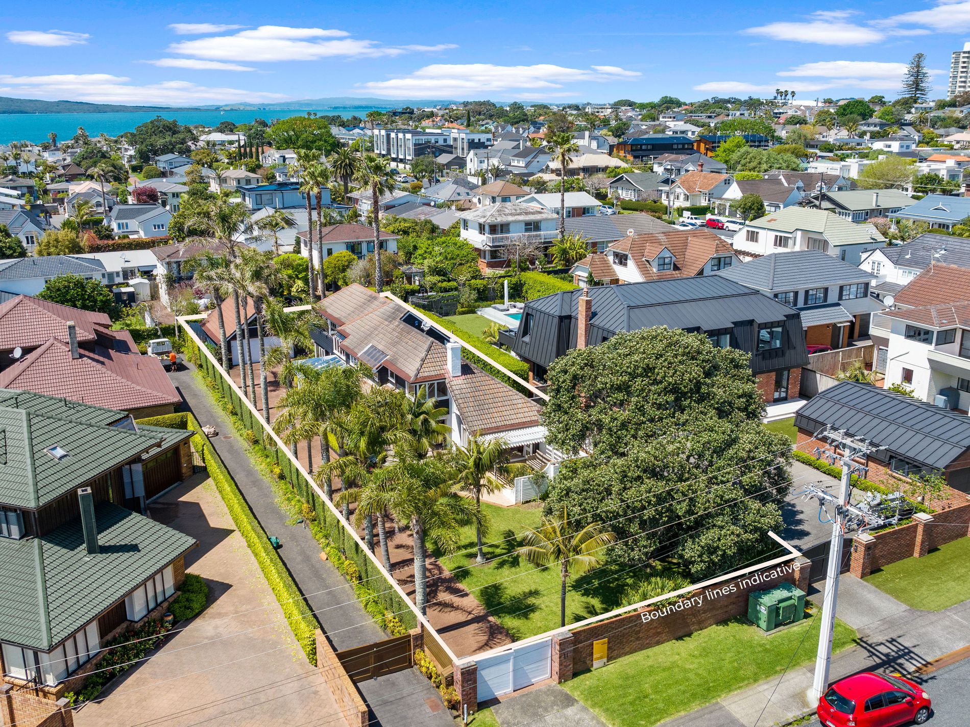 Only 2-3 minutes walk onto the sands of beautiful Milford Beach and the Milford Shopping Centre, being an 854m2 (more or less) FREEHOLD TITLE zoned Residential Mixed Housing Urban, in a tropical setting of established Palms and manicured lawns you will find this spacious European inspired brick and cedar home to call home. At entry level, there is a separate formal lounge area with a high vaulted cathedral ceiling, a large open plan kitchen/dining/family room, with gourmet kitchen complete with a top-of-the-line big bakers oven, and cooktop, plus a laundry room, toilet and shower.