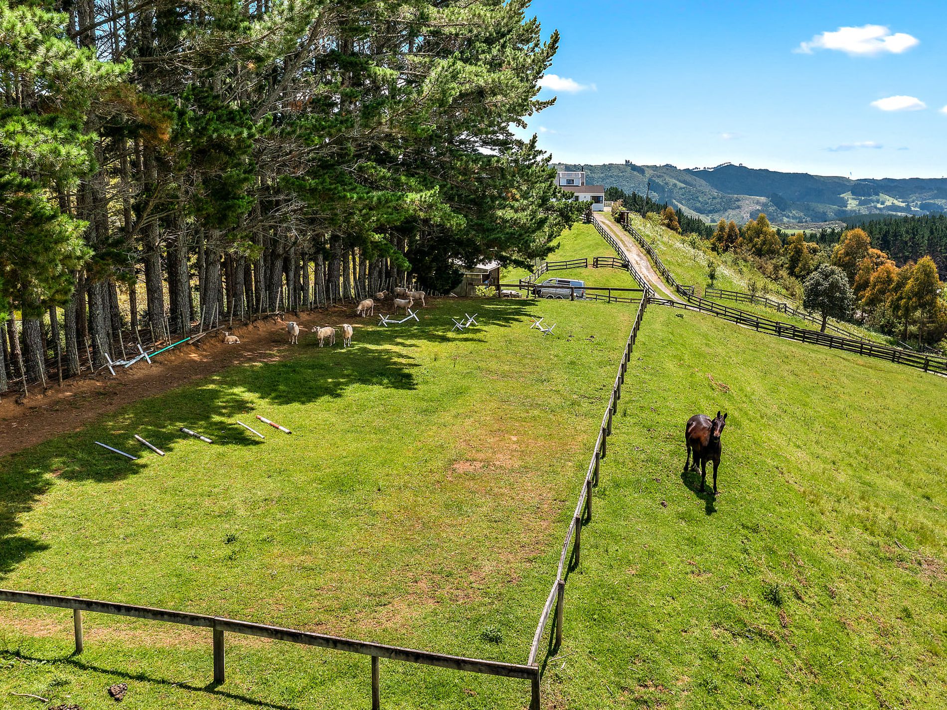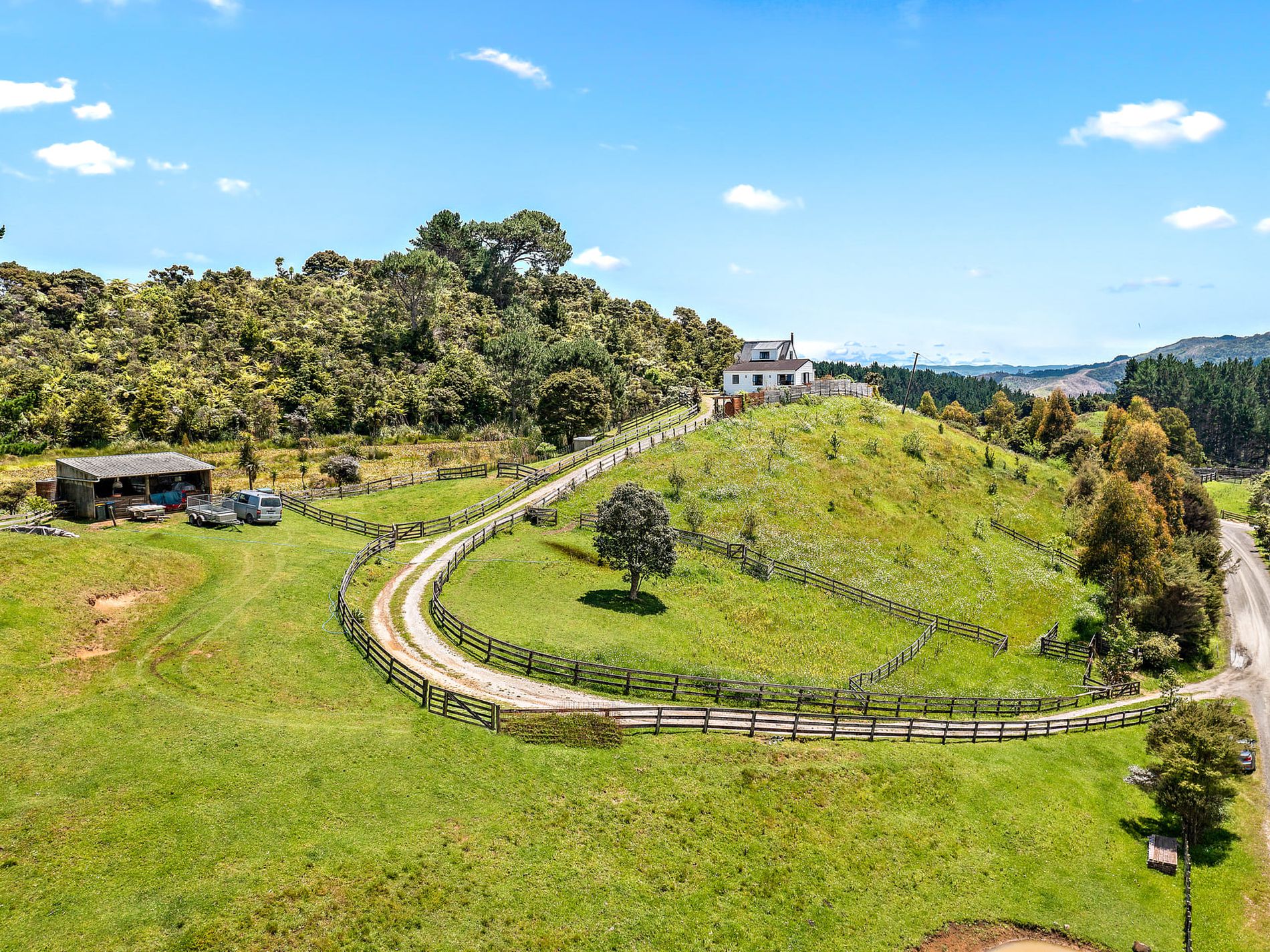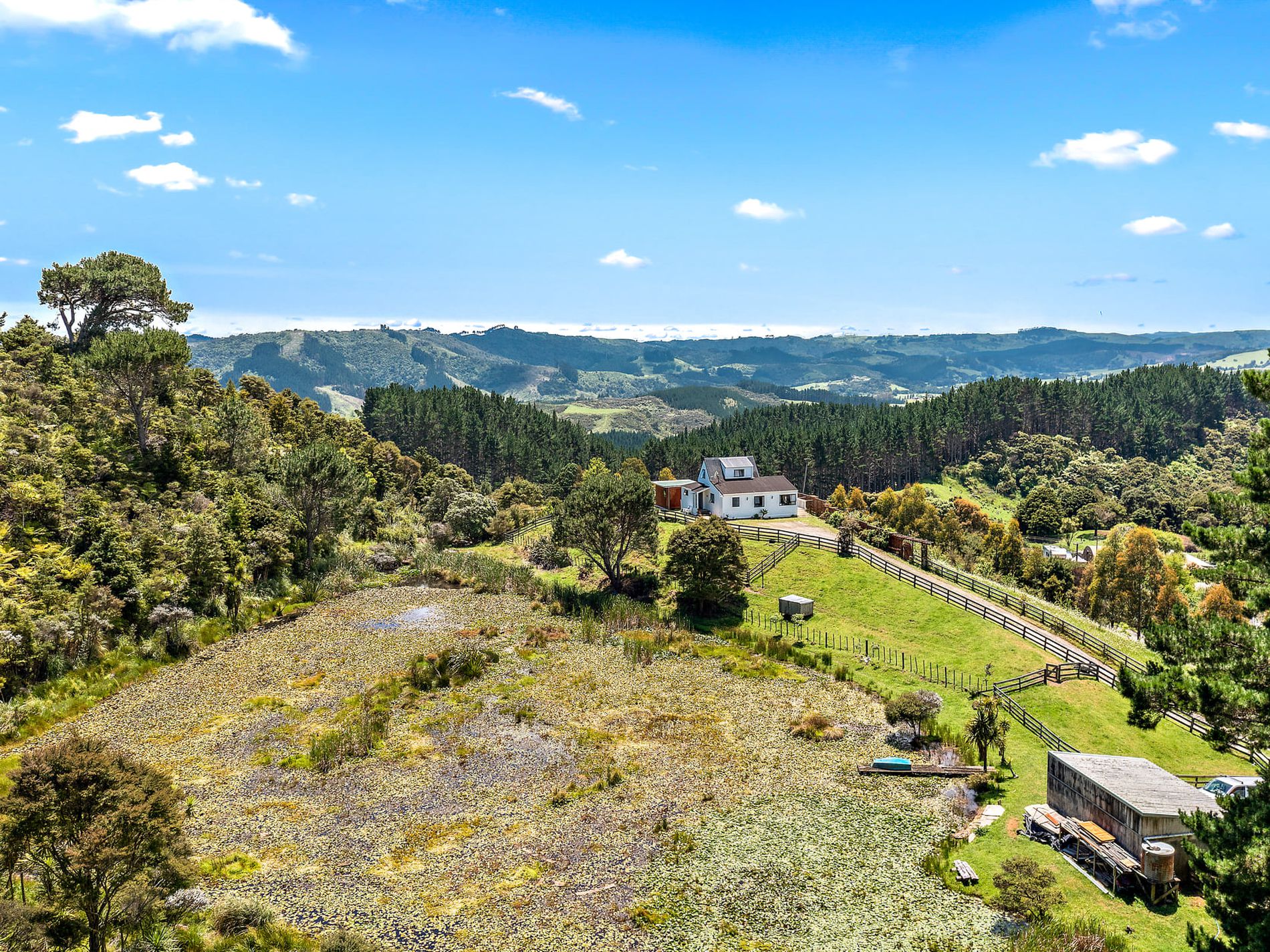 An opportunity like this one is rare to find. This elevated home with expansive views is situated on a fully fenced 4.7226 ha (11.66 acres) (more or less) of beautiful rolling land which boasts a slice of everything your heart desires! With the potential to be fully self-sufficient, you will enjoy the benefits of native bush with glow worms, a pine grove, plenty of firewood, a fireplace, a heat pump, a quaint natural naturistic BBQ/picnic area, a garden shed, pastures divided into several paddocks, an orchard with various established fruit trees, garden vegetable beds, a humble arena with a two-bay stable/tack room for your horses and you. This lifestyle property also includes a private lake fed by underground springs with a jetty featuring abundant water lilies of all colours.