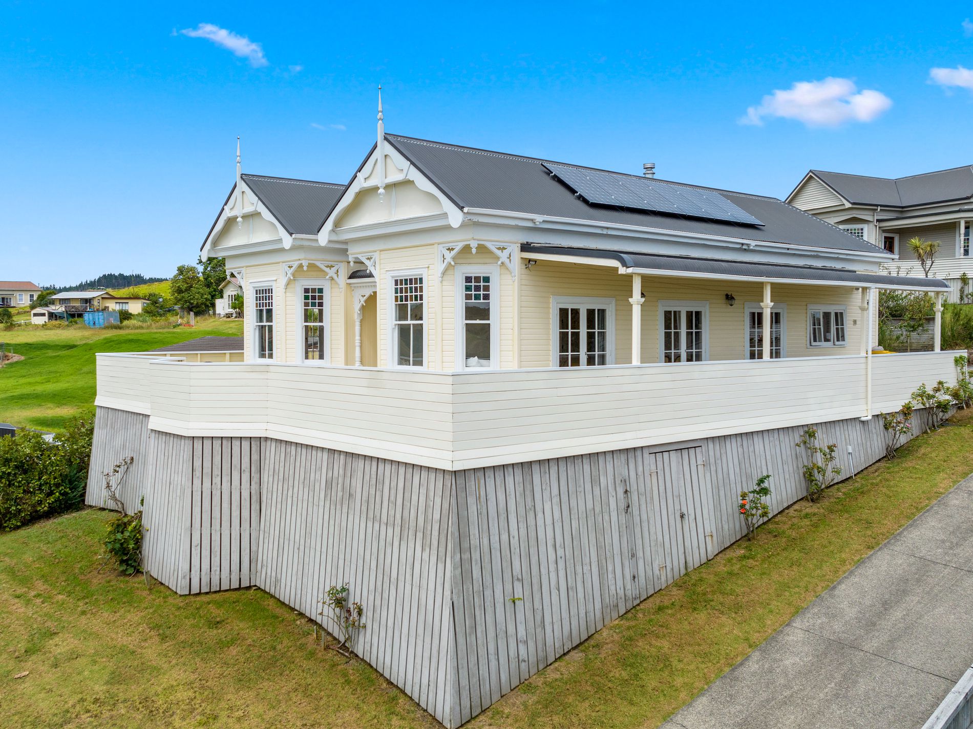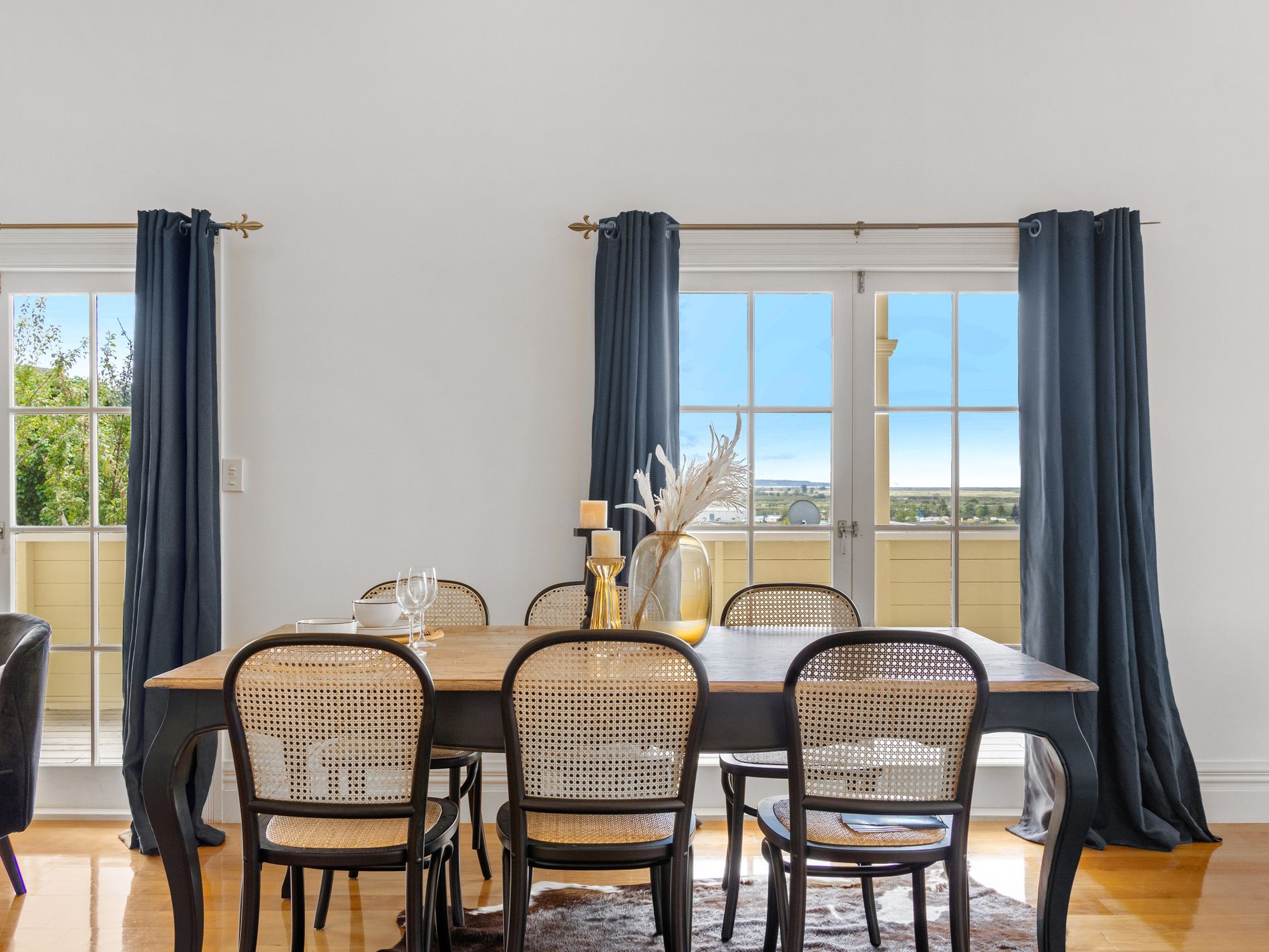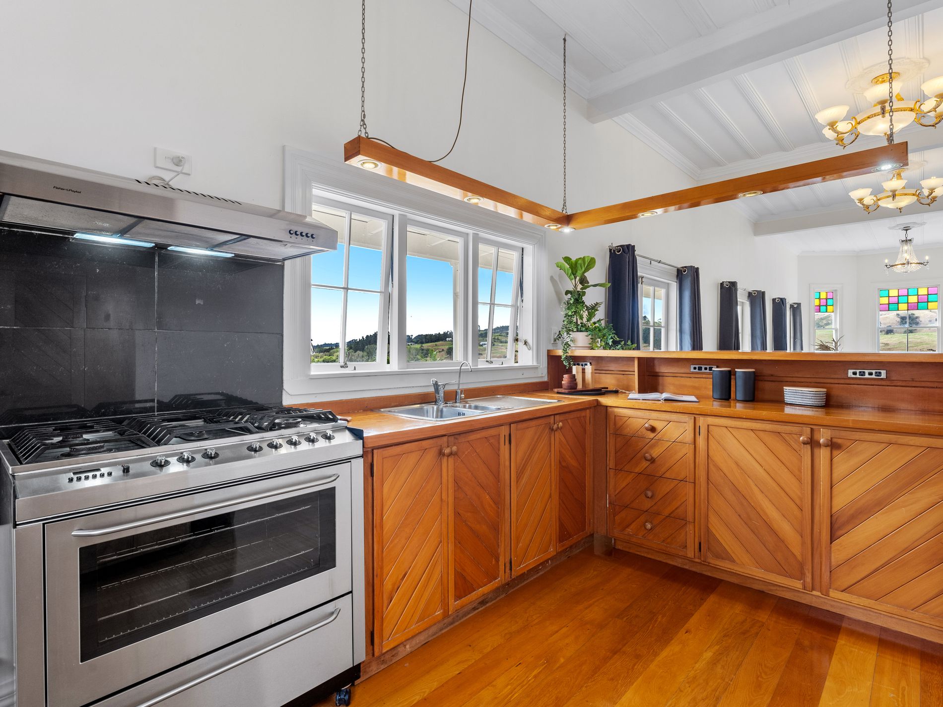 This grand double bay villa boasts high ceilings adorned with an exquisite antique chandelier from Buenos Aires. Step inside to discover French doors connecting indoor and outdoor spaces, highlighting quality kauri floors and a stunning kauri kitchen. Enjoy rural views from the expansive wrap-around deck overlooking the picturesque Kaipara Harbour. This deck isn't just any deck-it's a full-blown party deck, perfect for hosting gatherings and creating unforgettable memories with friends and family. The luxurious bathroom boasts double basins, a clawfoot bath, underfloor heating, and a bidet. The property includes a solar power system and fruit trees, with a shed providing space for DIY projects.