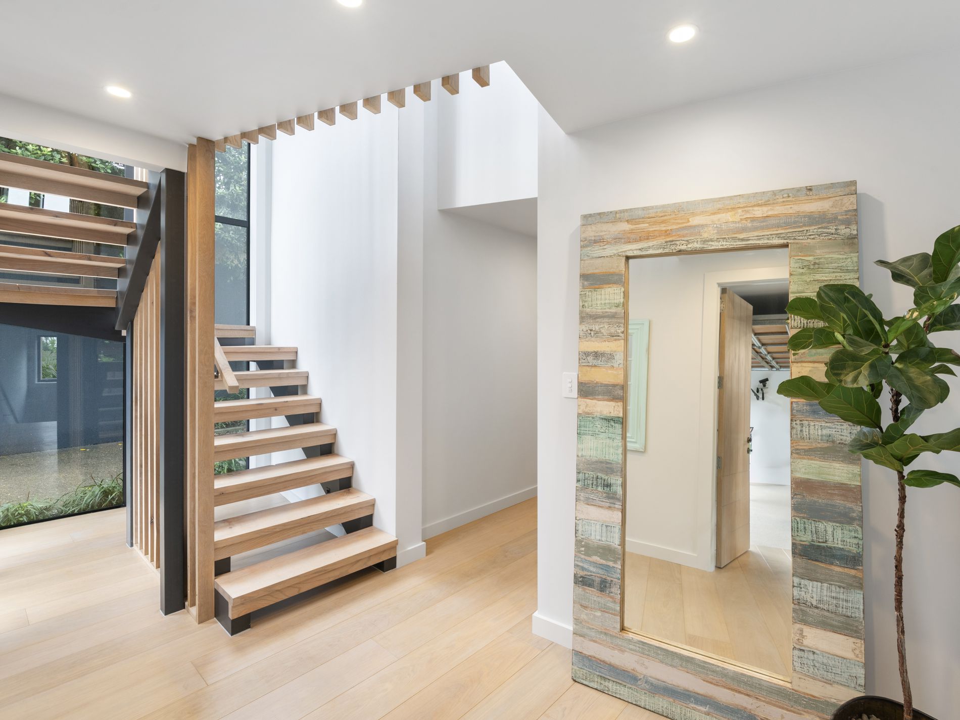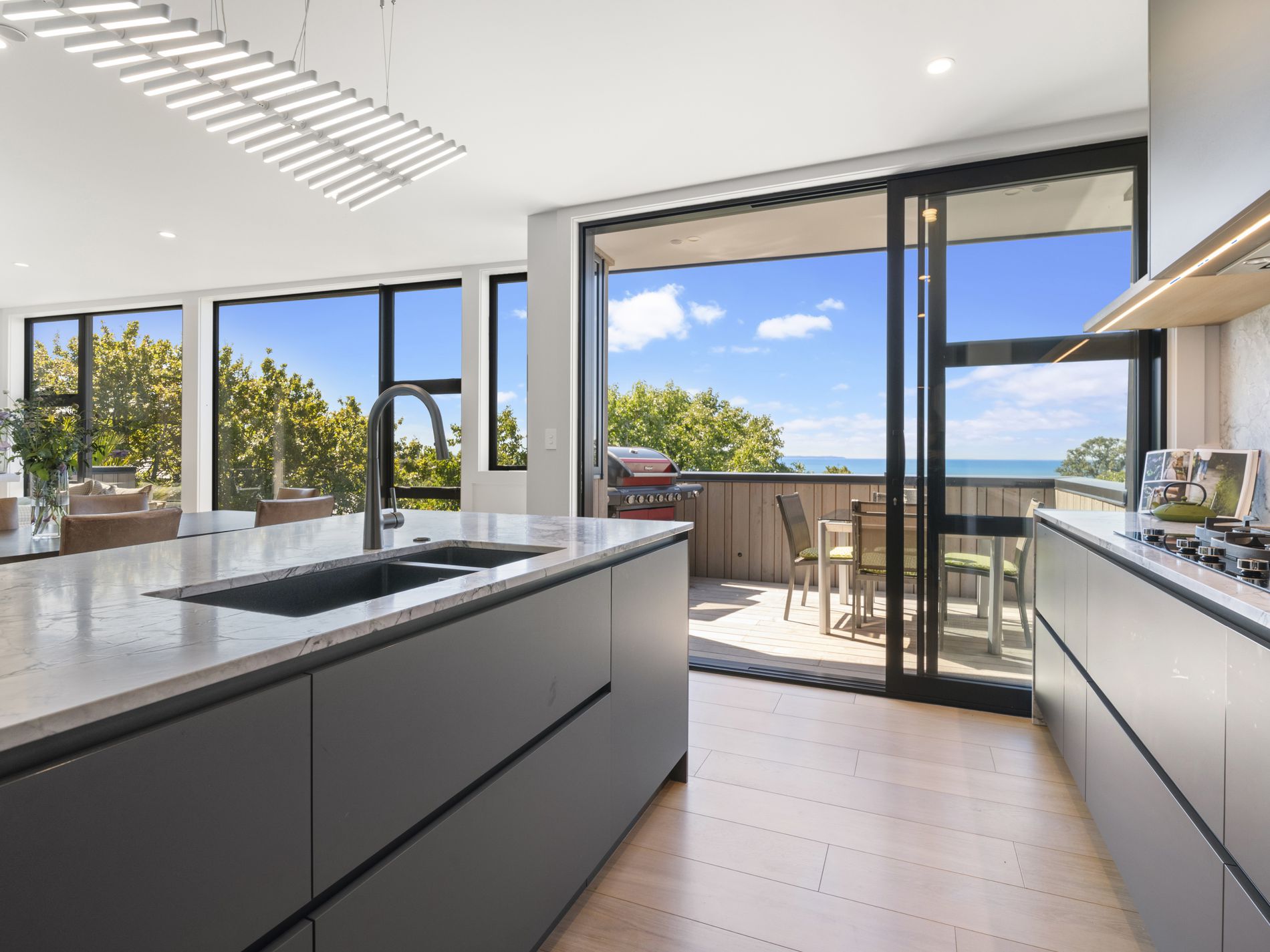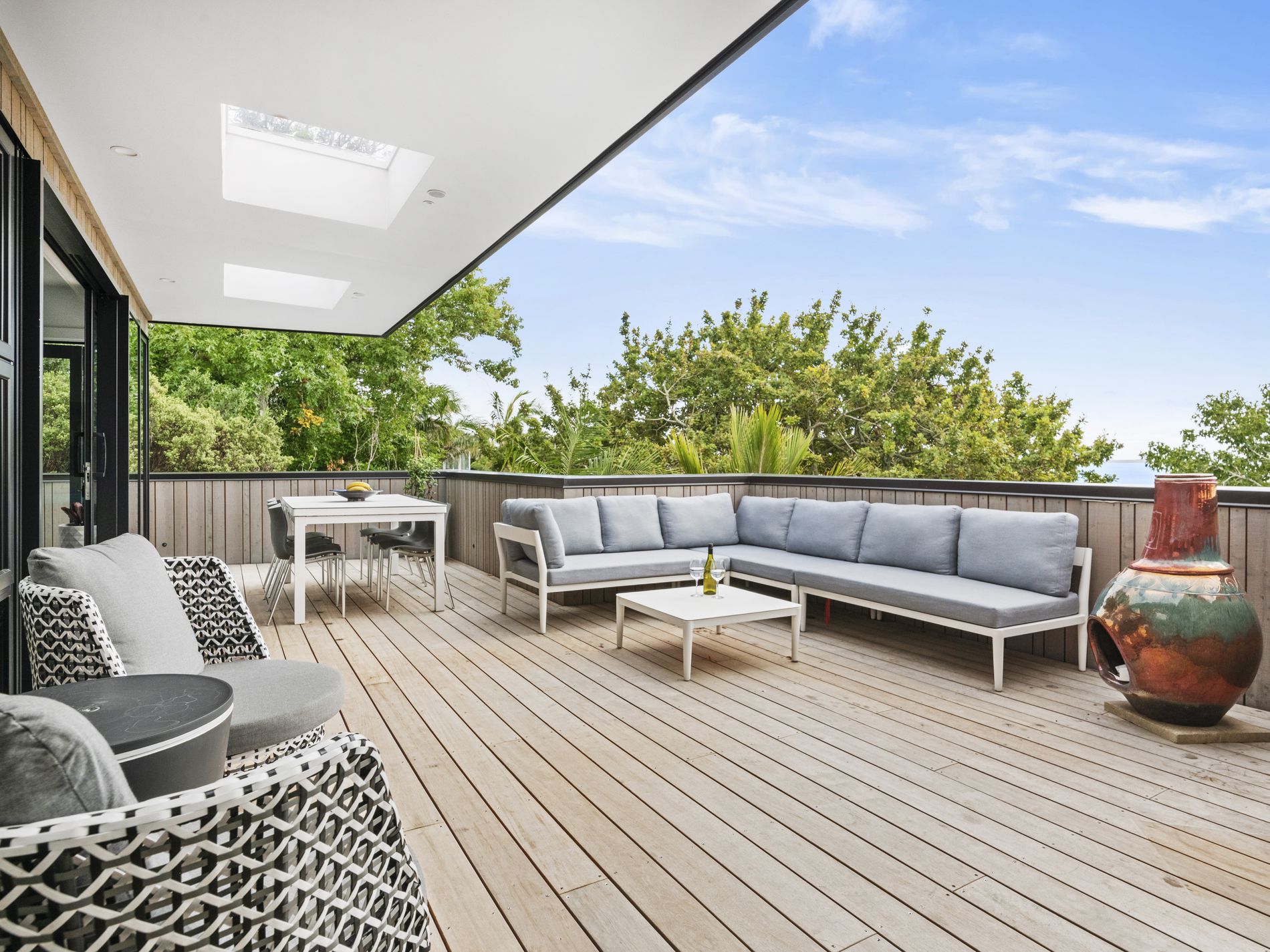Stunning Sea Views. An excitingly designed home that has been rebuilt and crafted with some beautiful timbers, Siberian Larchwood and Oak. Capturing an amazing sea view and fabulous sun, this home is situated on its own freehold section, trimmed with beautiful gardens for privacy.