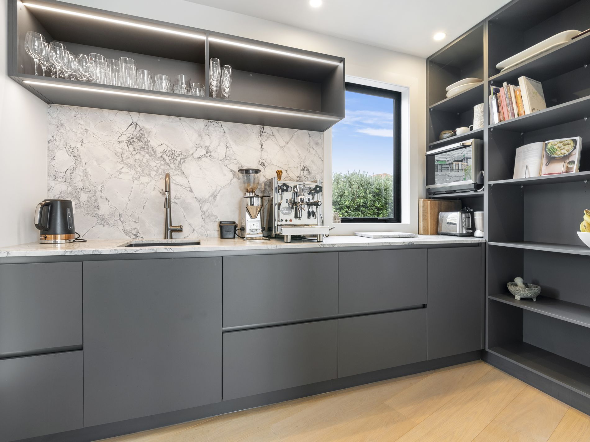 The living floor is exceedingly generous, featuring both a formal lounge complete with a cosy gas fire place and a family/dining room that all lead out onto the spacious partially covered deck, big enough to entertain a crowd. The well appointed state of the art kitchen includes a butler's pantry to one side and the other side opens out to a smaller deck.