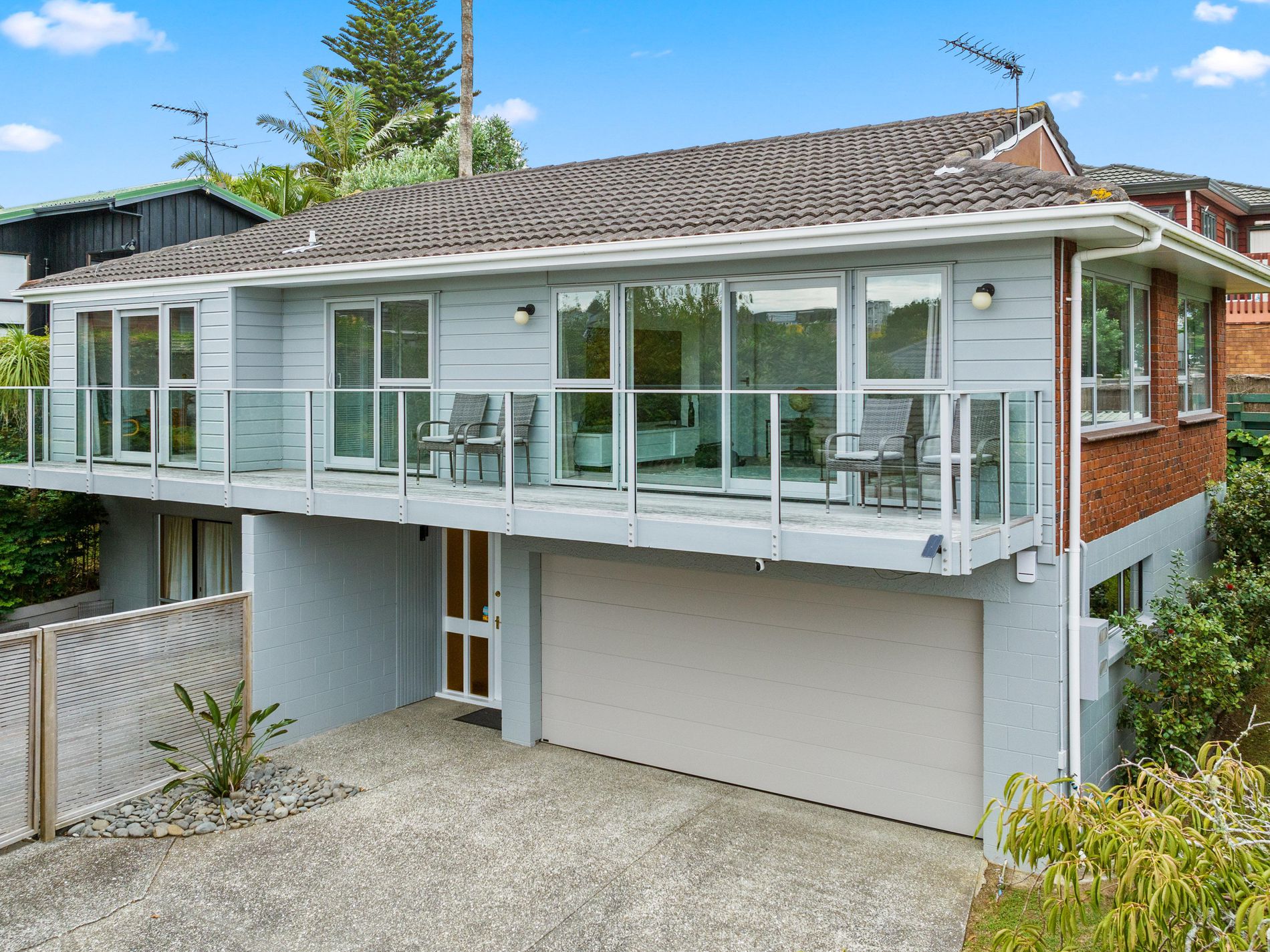 This timeless two-level brick and weatherboard home captures all day sun and an everchanging urban view over the Wairau valley. A backdrop to countless cherished moments, from kids' laughter echoing through family gatherings to the warmth of shared BBQs, this residence exudes a quiet happiness that resonates through the years.