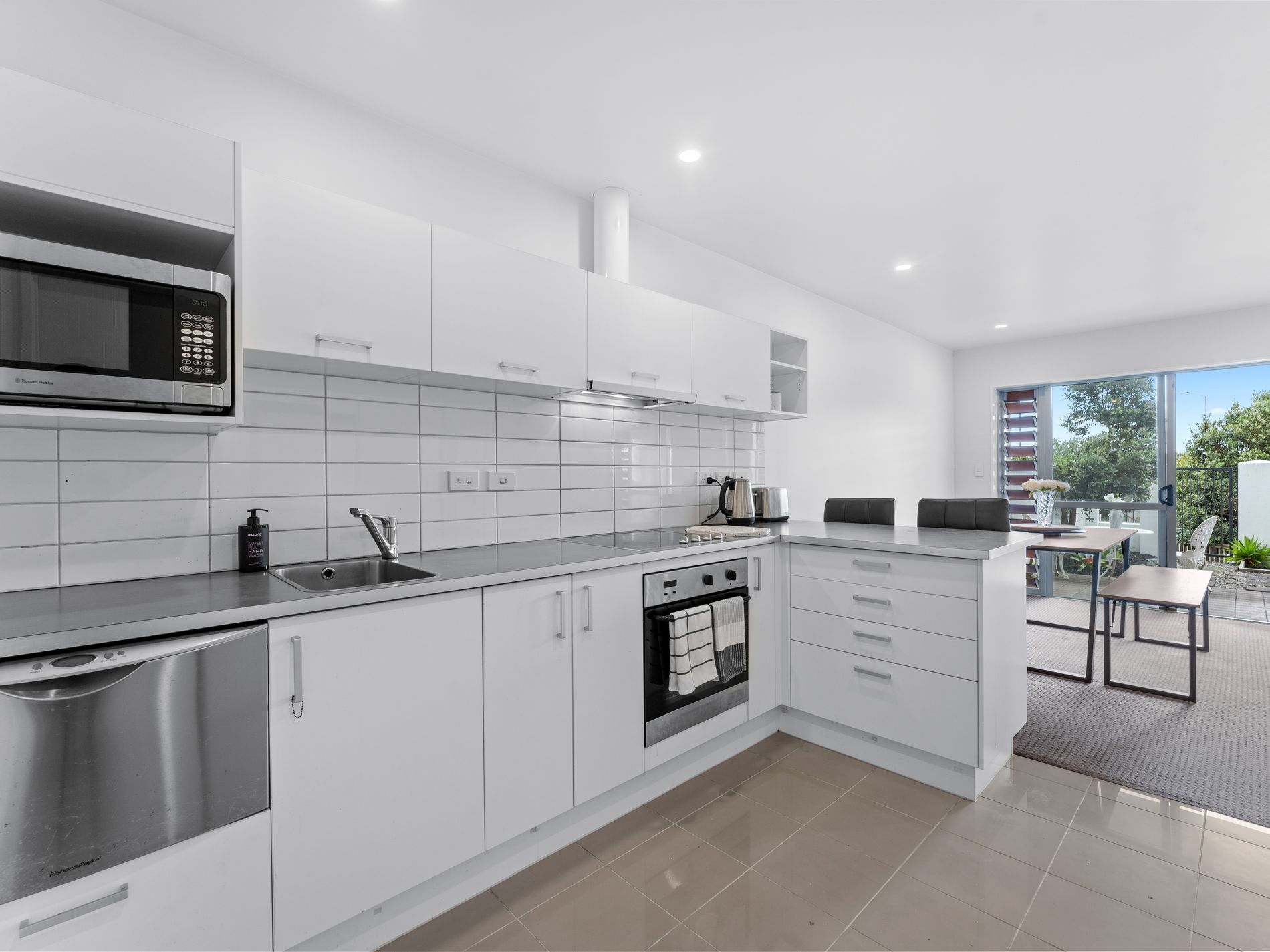 This Apartment is arguably the Best within the complex not only because of its side windows, courtyard and being the furthest back from the motorway, but also because it has just been repainted throughout, new LED downlights fitted, brand new blinds throughout, plus the tile floor commercially cleaned. Our vendors say sell as they have some new investment plans, so it is now your opportunity to secure this recently repainted ground level Apartment with no steps, a north west facing courtyard plus side windows which means you get plenty of Sun and ventilation to all rooms. A two bedroom Apartment, offers modern style living in a very sought-after area. The second bedroom has the flexibility of opening bi fold doors into a large lounge and dining area. The lounge and second bedroom open out into a very private courtyard and garden., ideal for your outdoor living. Upper level Apartments simply don't have this. The master bedroom also has a small patio allowing natural light into the room. Open plan modern kitchen with separate bathroom and separate laundry makes easy living. The extensive list of chattels also include a Washing Machine, Dryer, Fridge, brand new LED ceiling downlights plus access to satellite TV and high-speed internet.