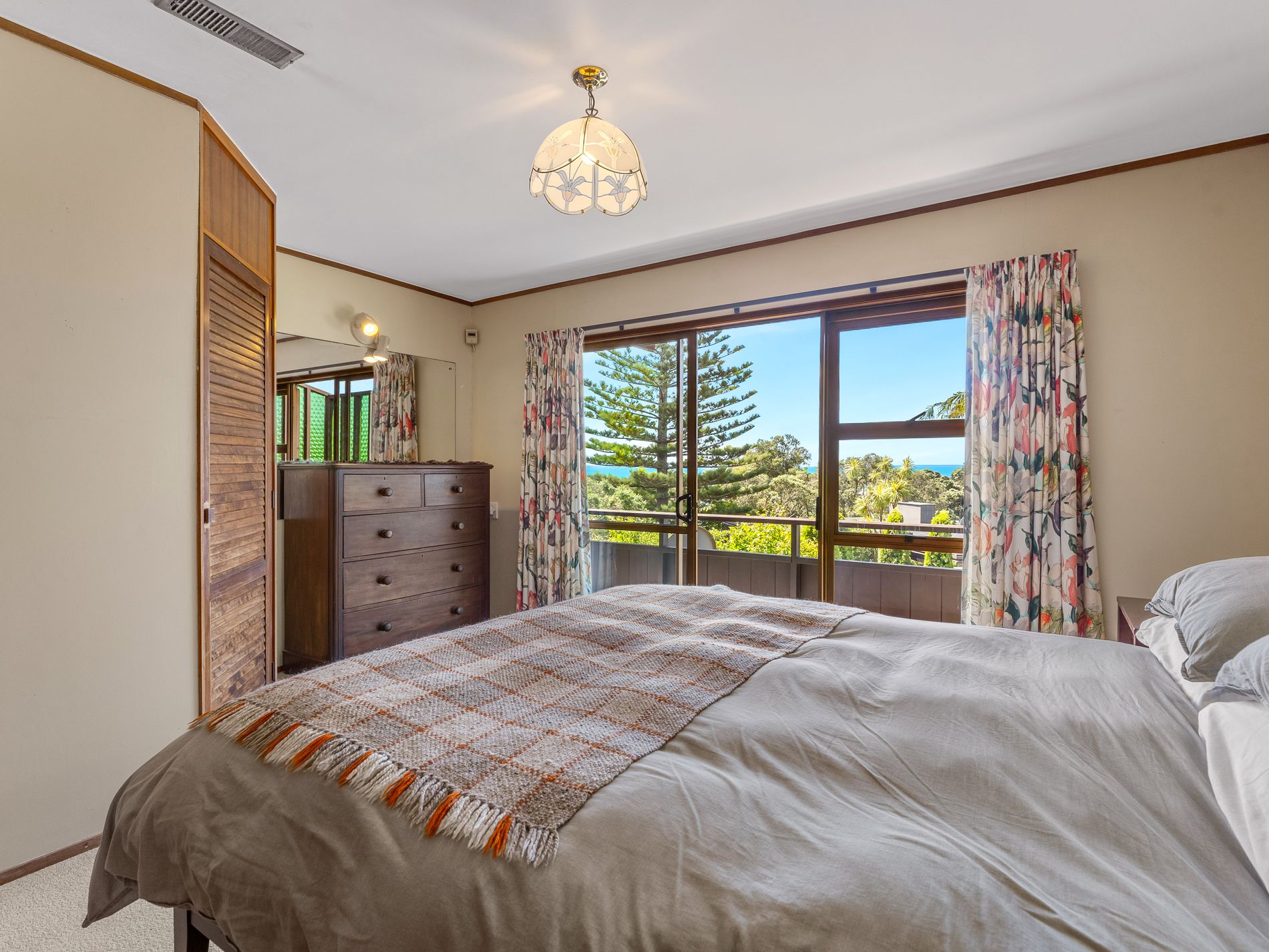 The highlight of the sunny garden is the massive pohutukawa which frames the view from upstairs and adds to the sense of classic Kiwi summers. And the beach is your other backyard: with the sand just 100 metres away, you can be in the sea in minutes.