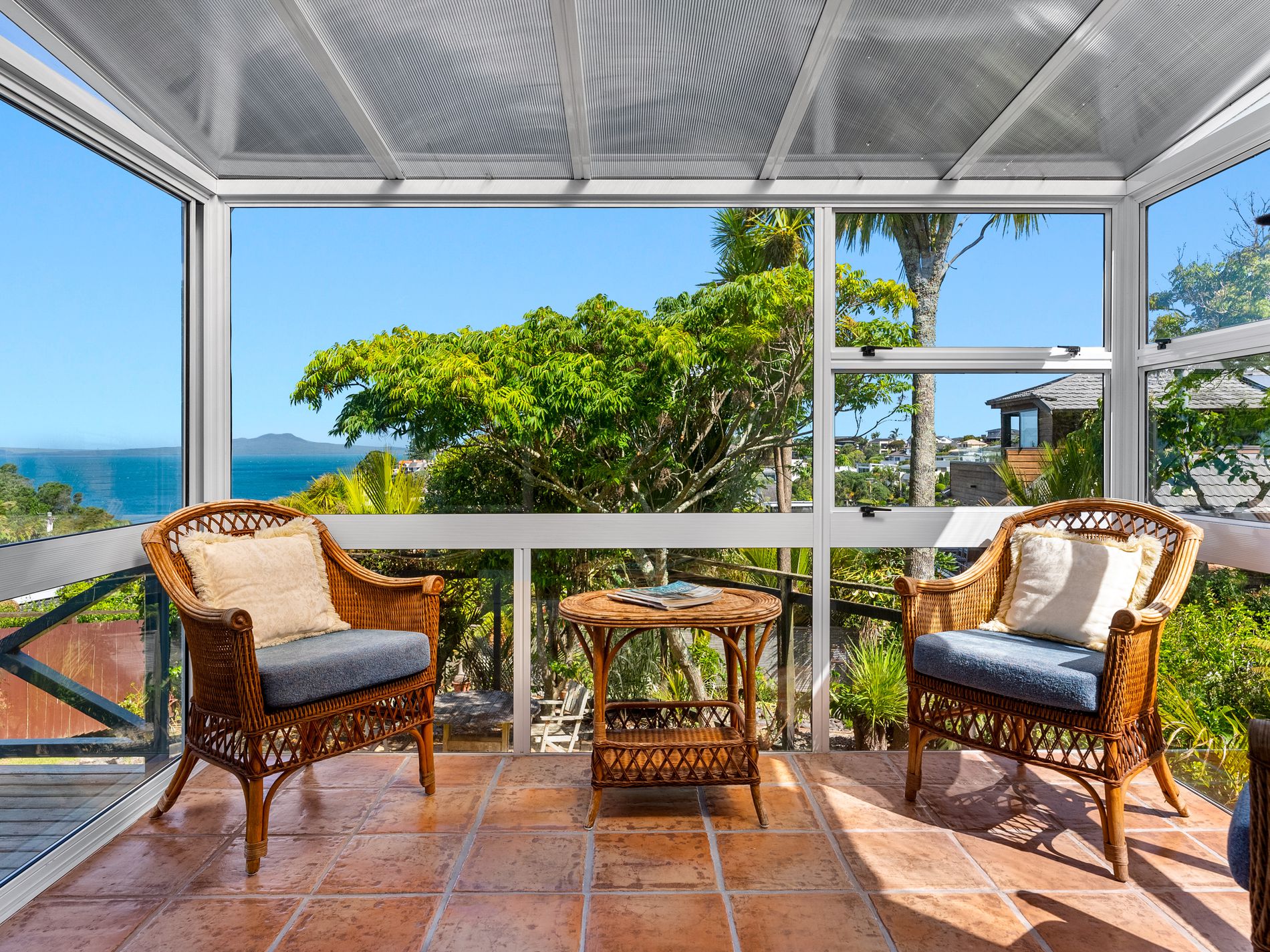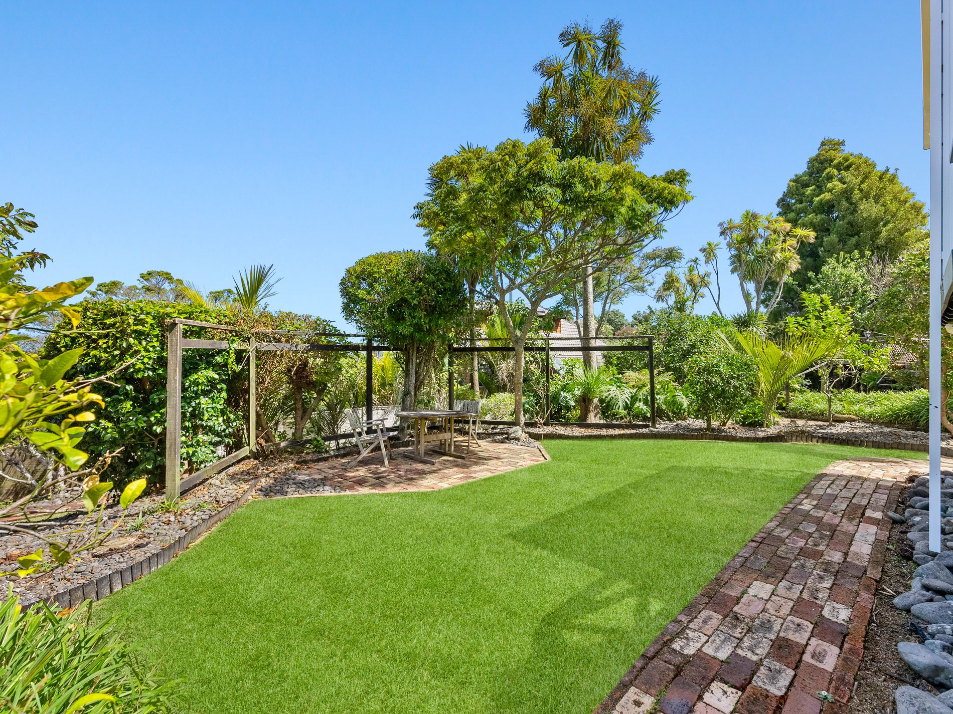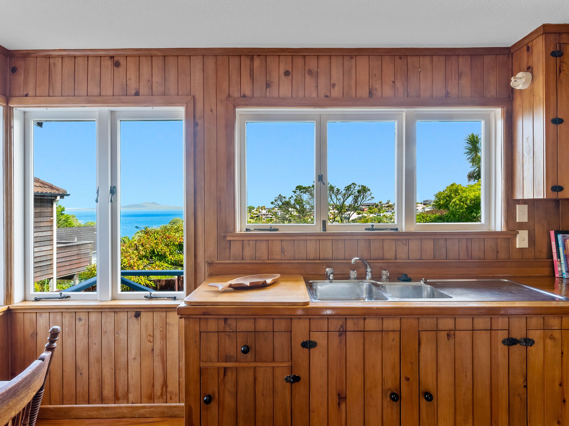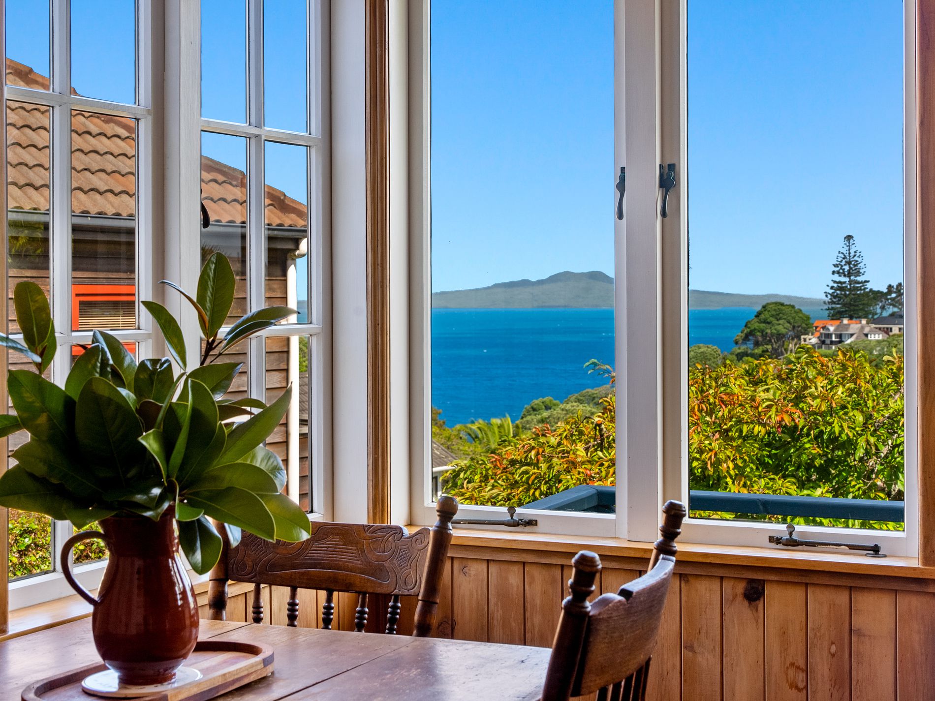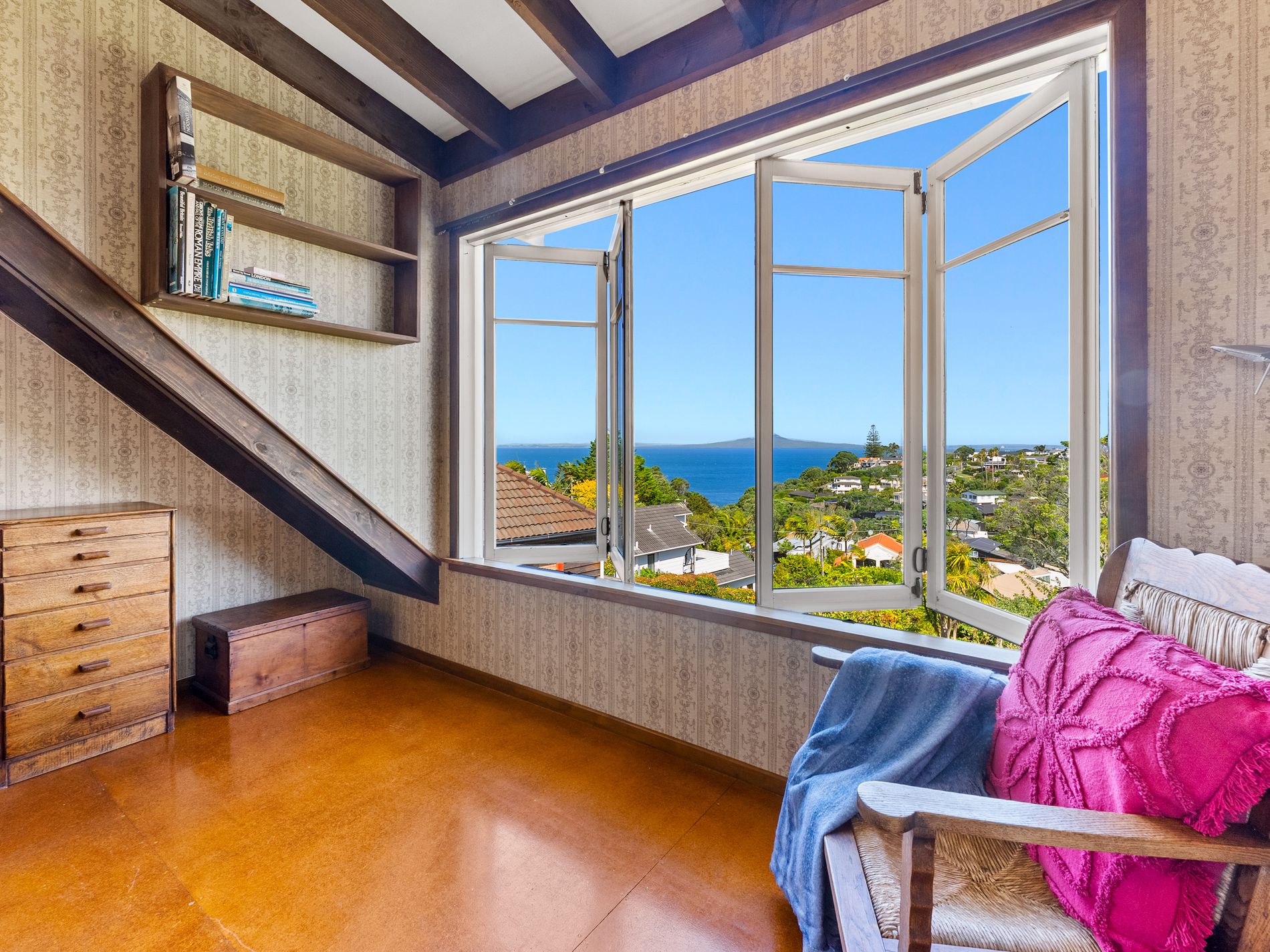 Enjoying stunning seaviews out to Rangitoto Island with incredible sunrise mornings, this property sits on a full freehold site with established gardens, including mature fruit trees and plenty of space for kids, pets, and your vege gardens.