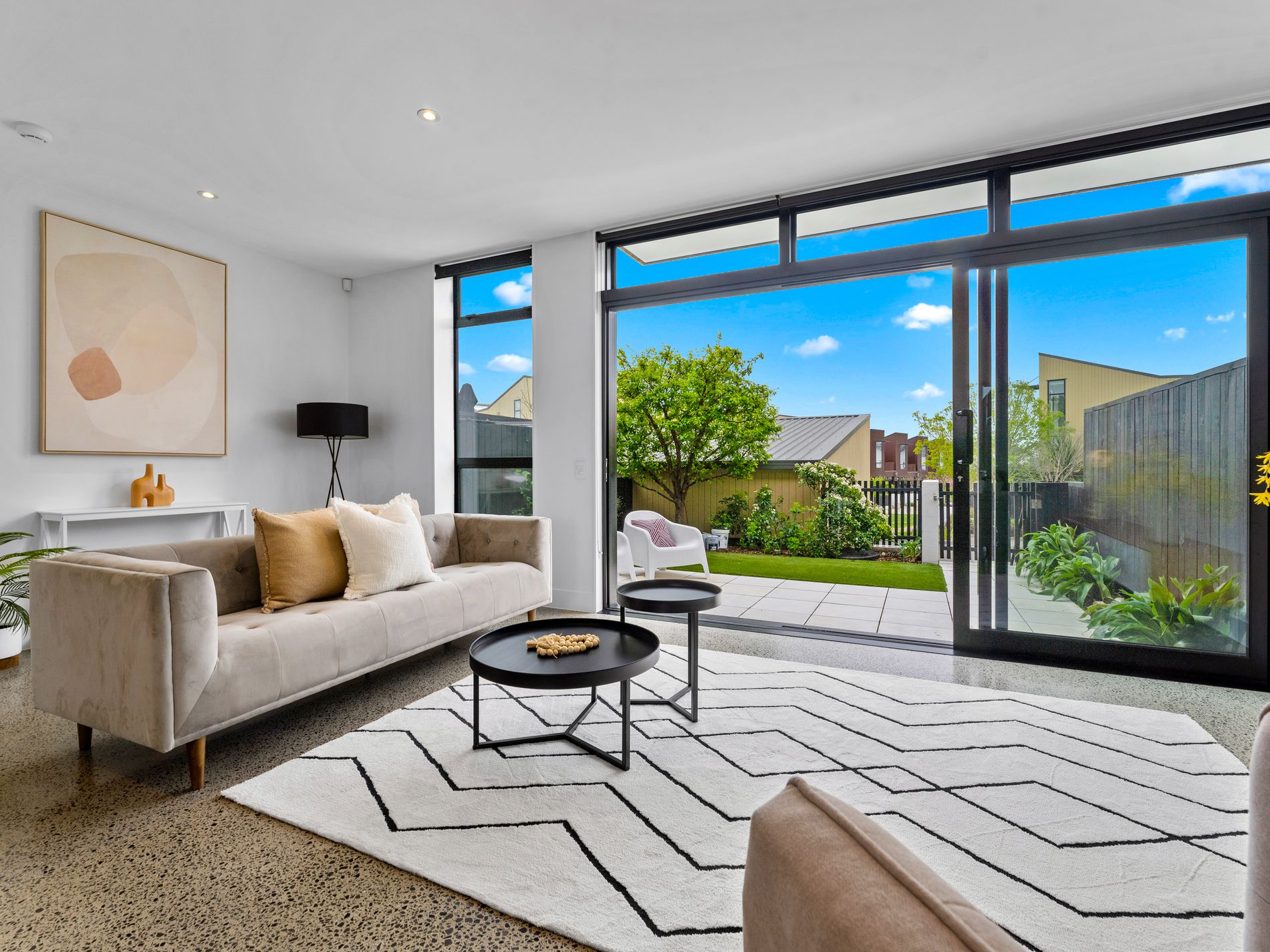 Outdoor living enjoys plenty of sunshine. Large glass sliders open to an immaculate patio and garden for al fresco dining in your own raised sanctuary. A mere skip and a hop across the laneway finds the lush Sunderland park, to kick the ball around.