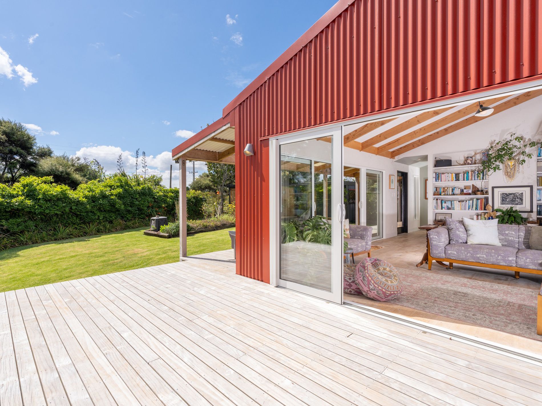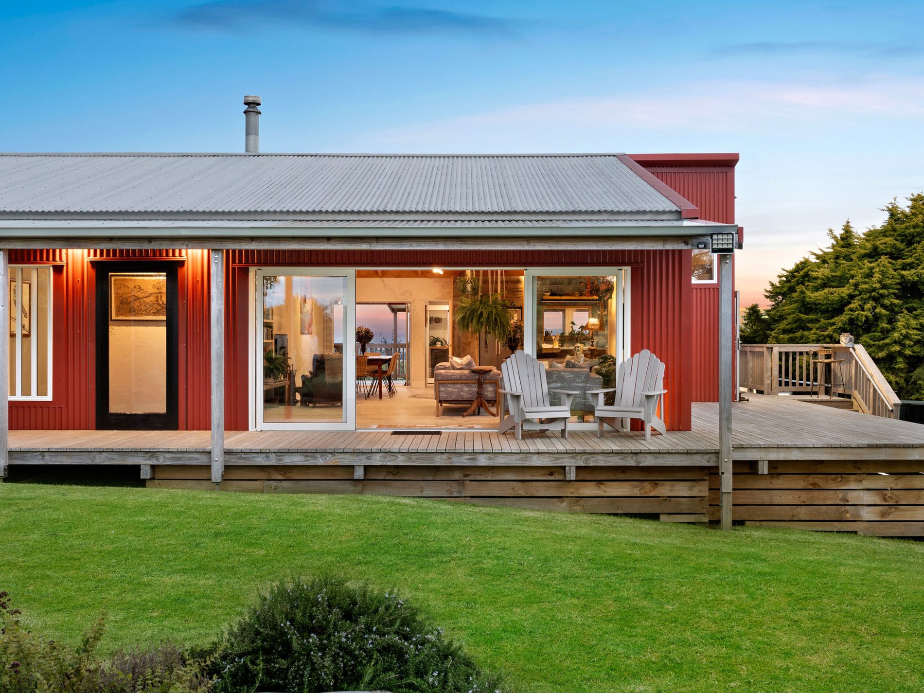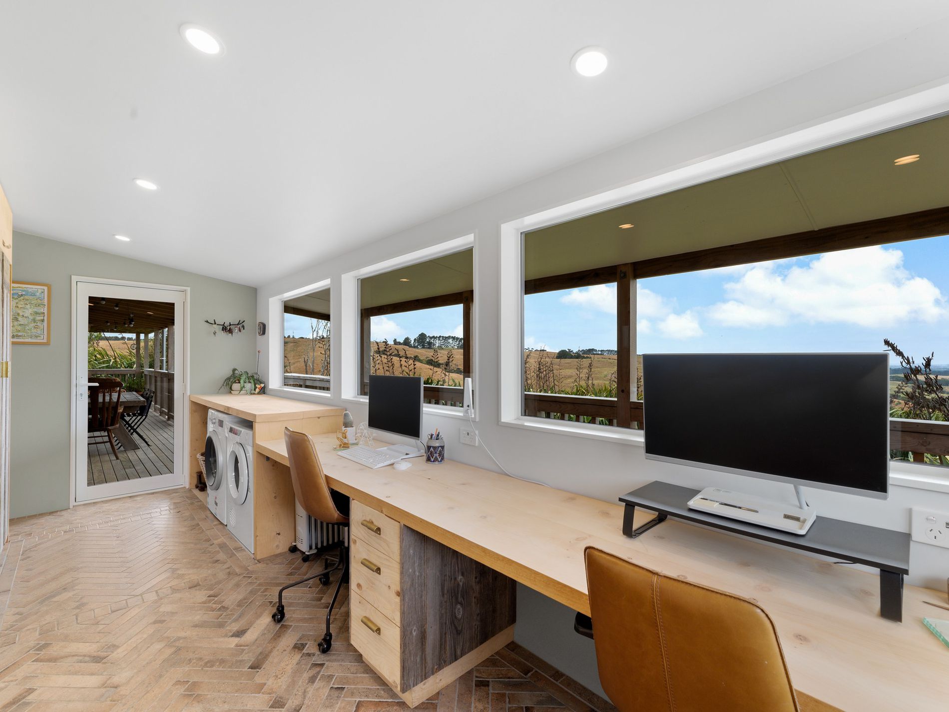 A tranquil property blending bespoke design with functional elegance, nestled in a private park-like setting with sweeping rural vistas including the Kaipara Harbour, Muriwai Beach hills, and the distant Auckland skyline with the iconic Sky Tower. Ideal for artists inspiration.