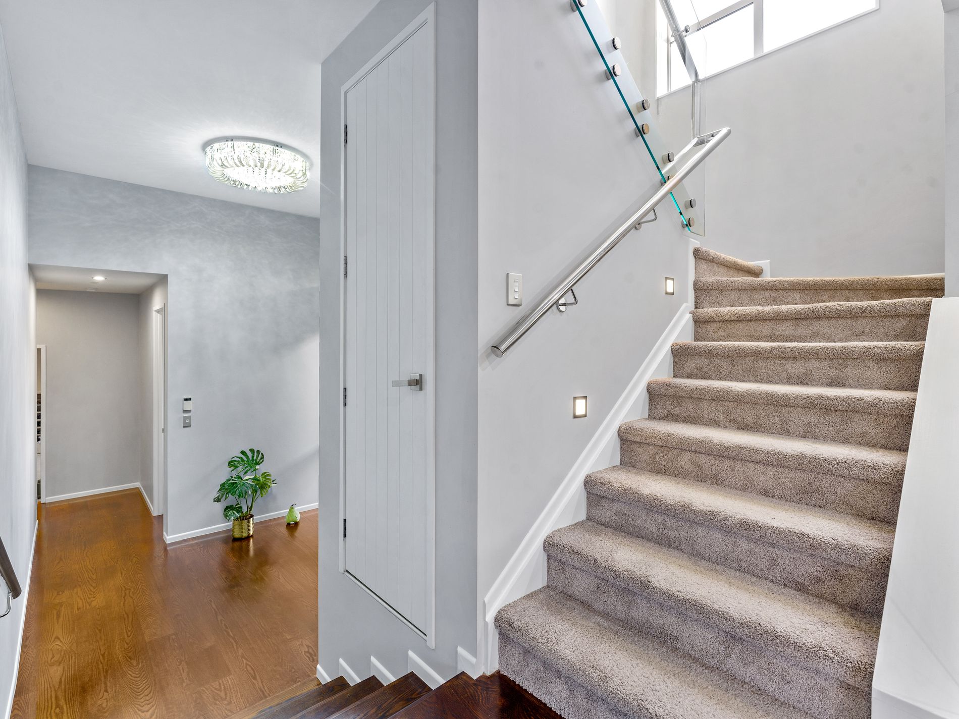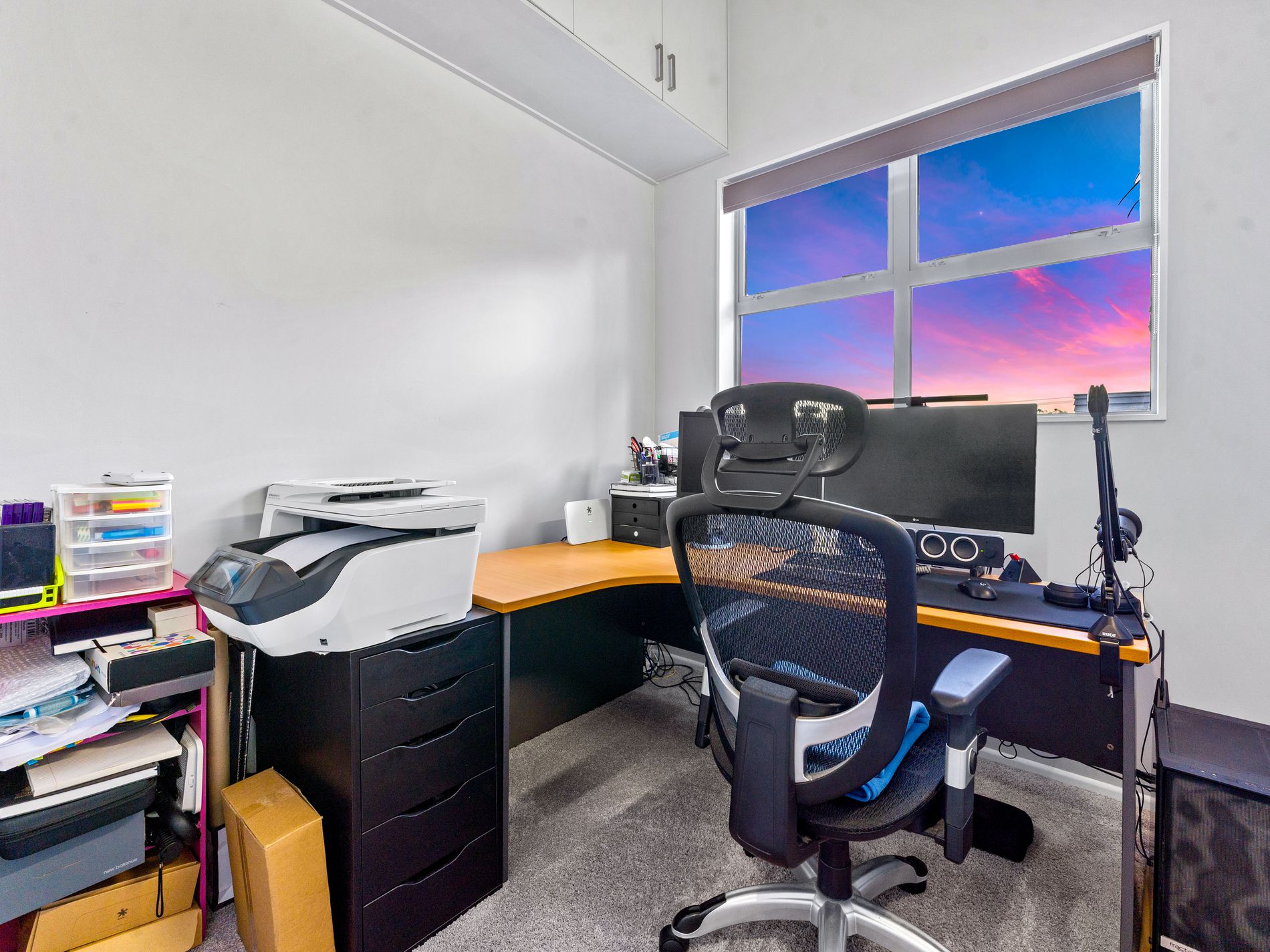Downstairs enjoys large open plan living with an impressive dining space and designer kitchen with large servery. This area is ideal for entertaining or family time with ranch sliders opening out to an easy care garden, perfect for enjoying an afternoon drink in the sun. The fourth bedroom and office are also downstairs, both offering incredible storage.
