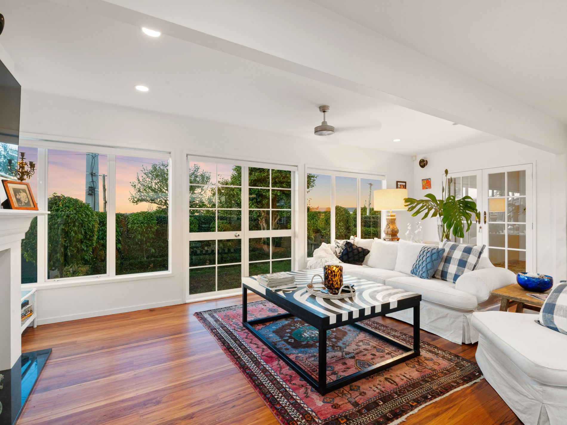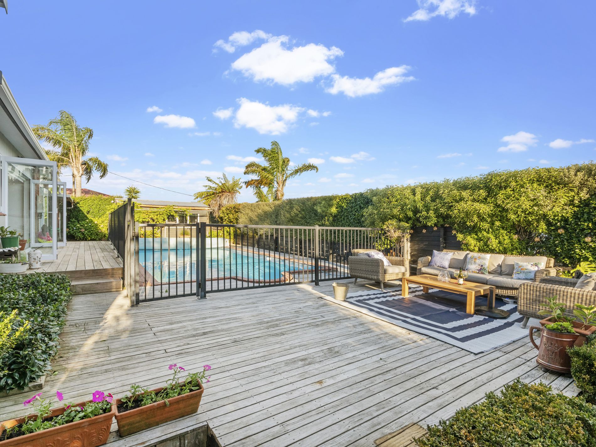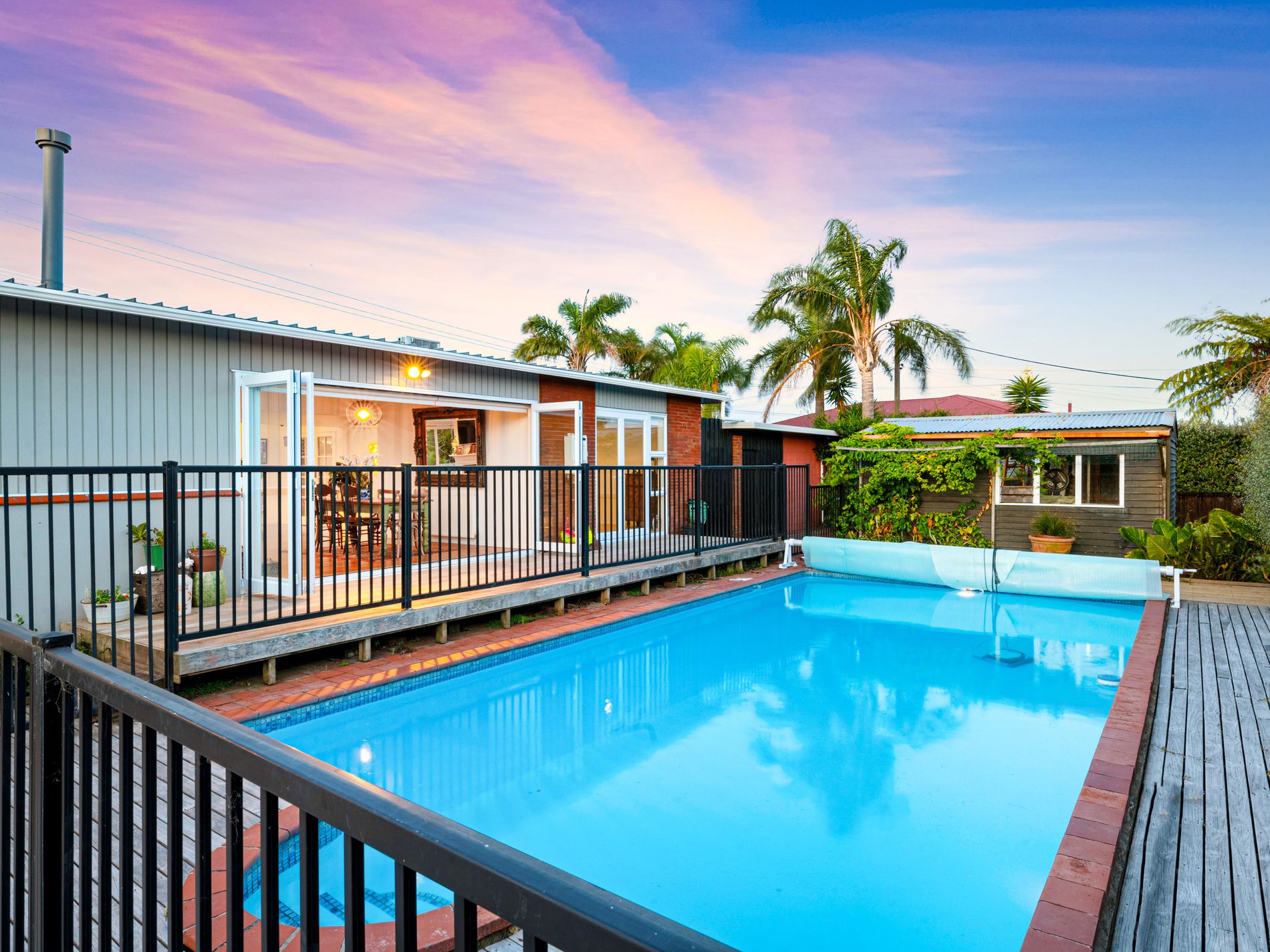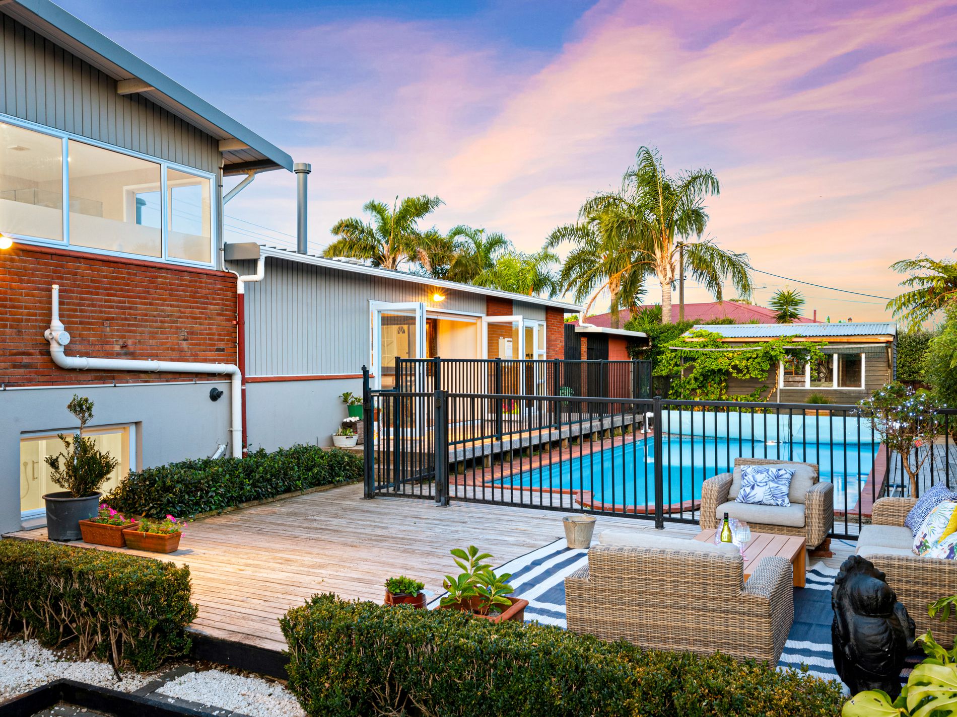This charming 1970s brick home is a family dream, combining timeless appeal with modern comforts and offers a glimpse of Rangitoto Island and the Hauraki Gulf from the upstairs bedroom and bathroom.