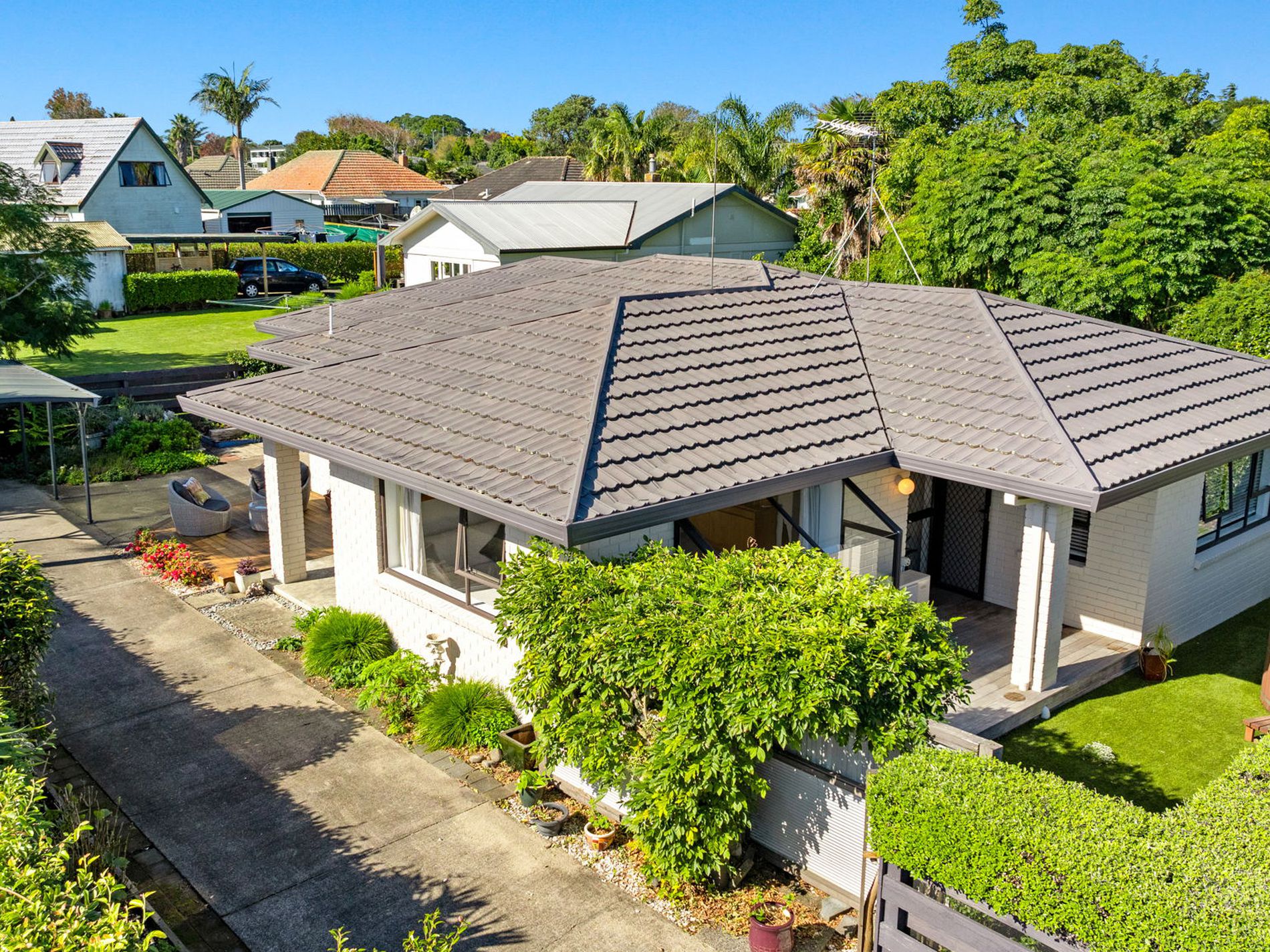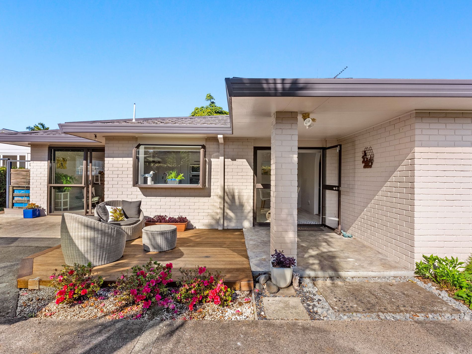 The home has been modernised and includes a good sized kitchen & convenient semi-ensuite bathroom complete with a walk-in shower and bidet toilet for added comfort. The single internal entry garage has been converted to provide a comfortable home office, hobbies room or a place to simply sit and enjoy the sunshine. The grounds are super low maintenance too - there is a private patio and fenced outdoor area complete with artificial grass, meaning there are no lawns to mow, and a delightful hot tub is negotiable. A removable carport adds convenient undercover parking, and the location is handy to View Road School and an easy walk to Waiuku town centre.