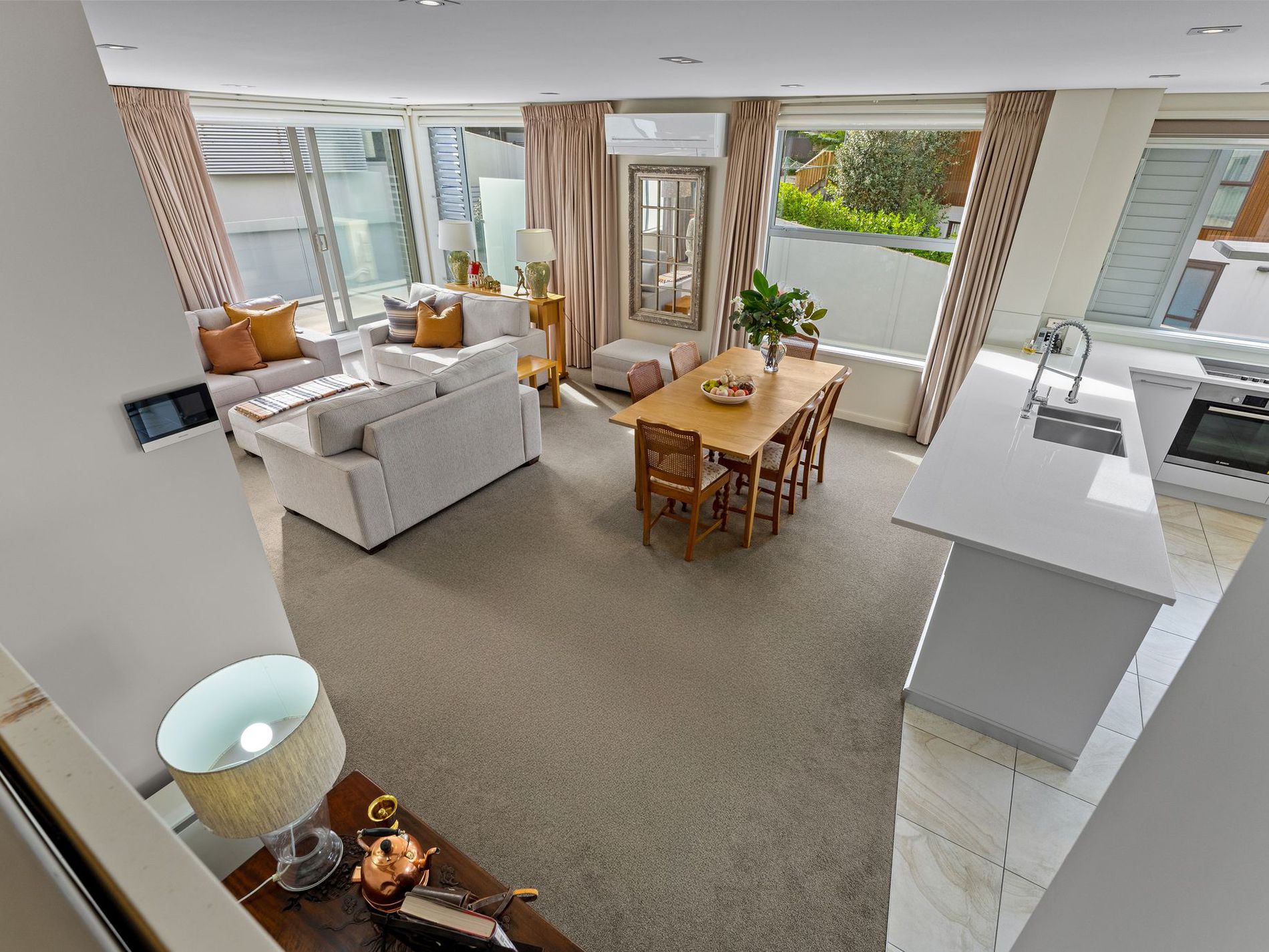 Tilt slab concrete walls and concrete slab floors throughout, this immaculate home of three levels has its own lift, separate heat pumps throughout and solar. The accommodation is equally exceptional with its stylish combined lounge and dining and sun-drenched deck, leading from the European kitchen is a cosy conservatory set amongst the privacy of the beachside Pohutukawa's and looking down at your own beautifully manicured lawn and garden area, the perfect setting for your morning coffee.
