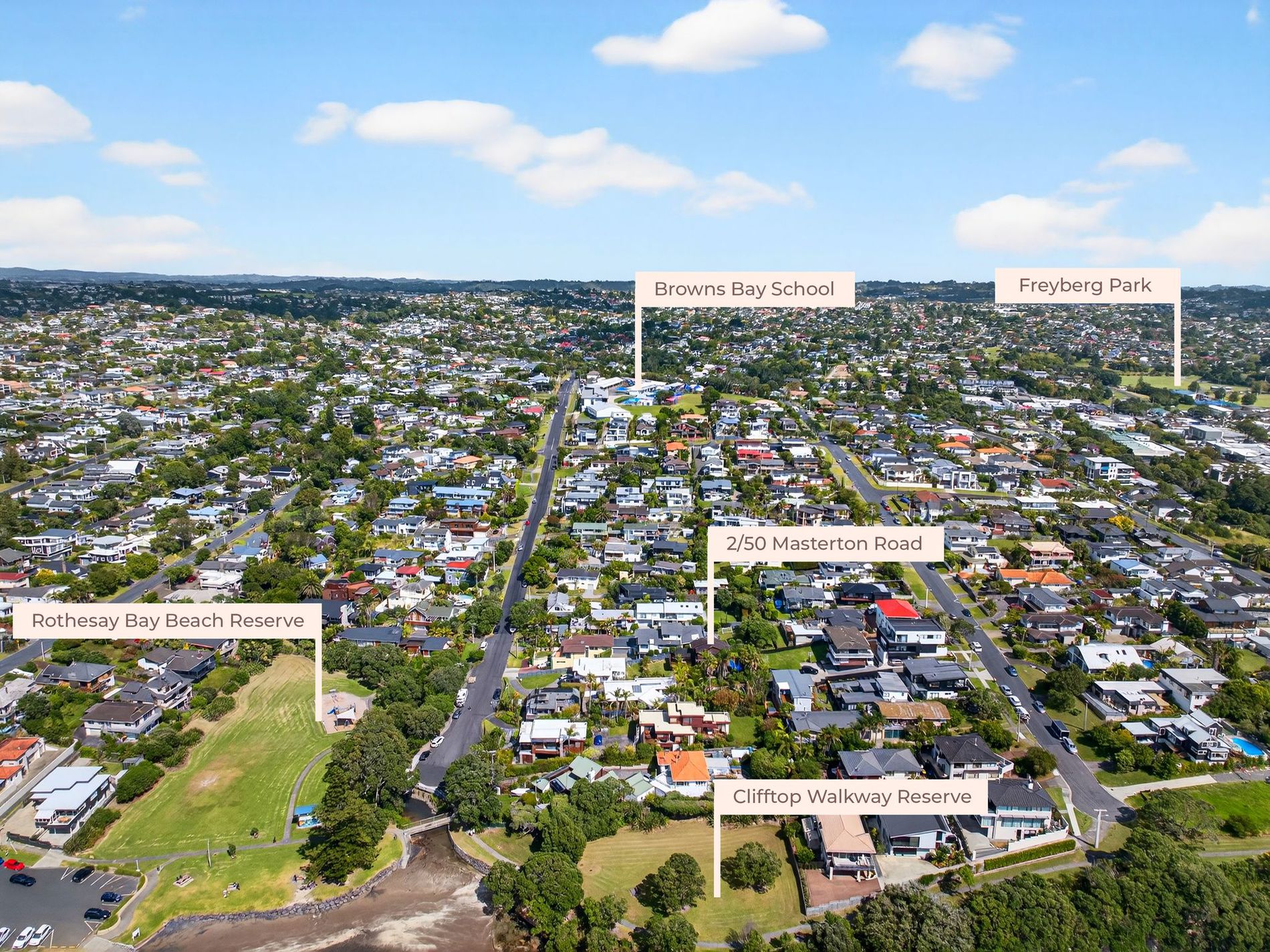 From its elevated position the home enjoys outlook toward Rothesay Bay, while being just a short stroll to Rothesay Bay Beach, local shops, cafes, and excellent schooling.