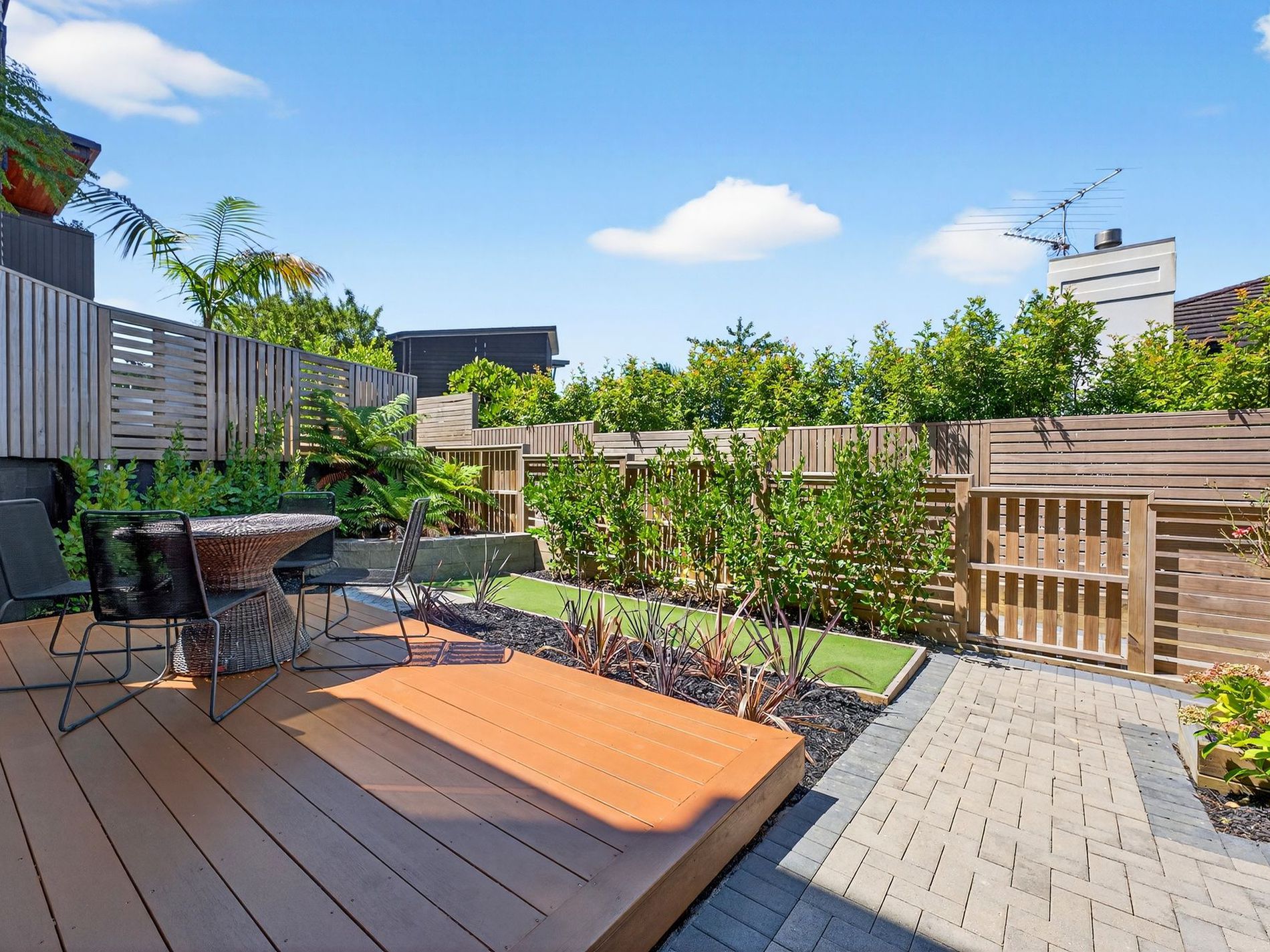 Open-plan living features a well-appointed designer kitchen and opens to large outdoor deck, perfect for entertaining or relaxing. Unique to many townhouses are the North facing side windows, allowing natural light and sun to the large living and entertaining spaces.