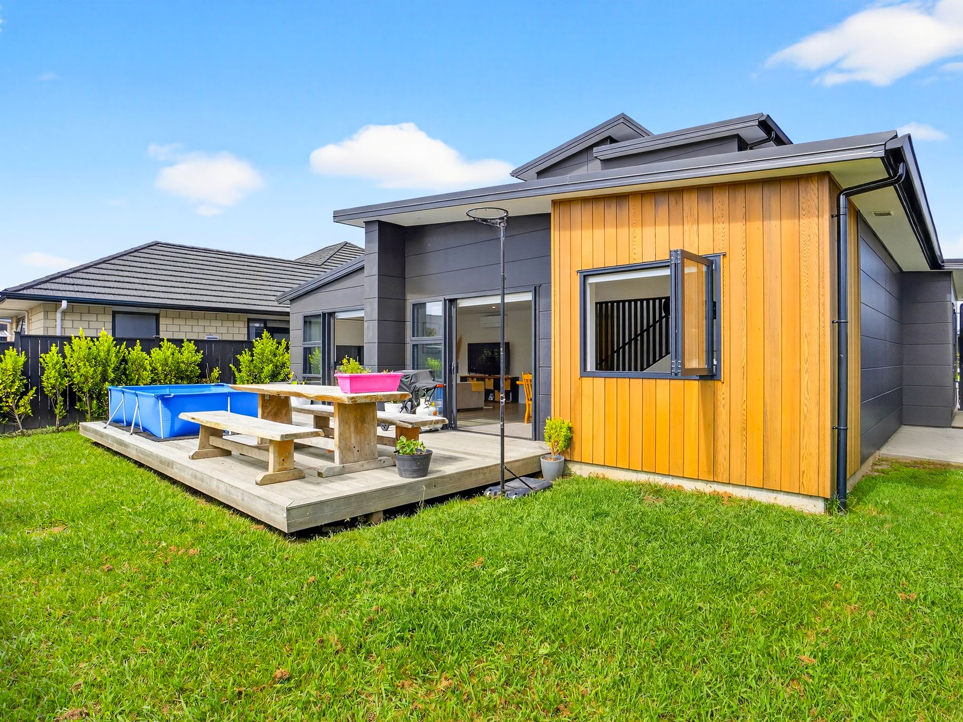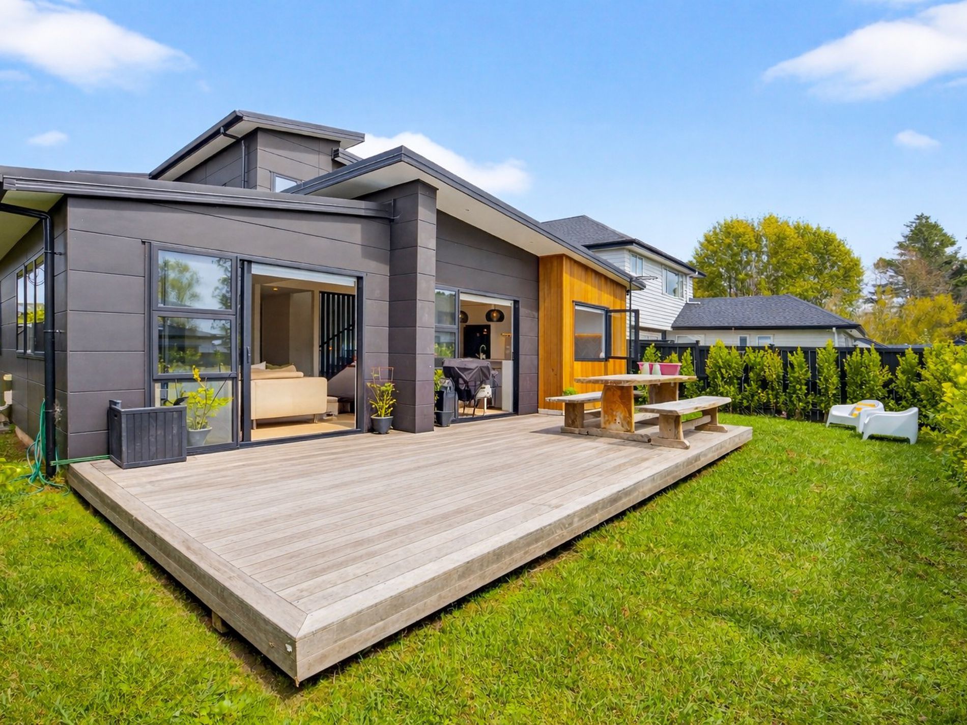 • Sunny open-plan living flowing to outdoor deck
